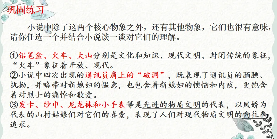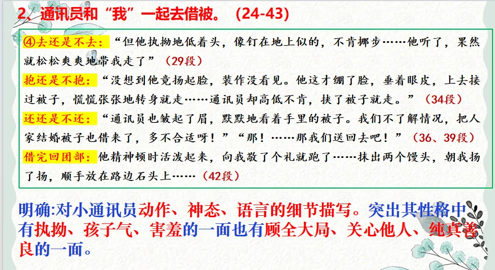 【课件配套学案】第一单元小说《百合花》《哦,香雪》考点梳理