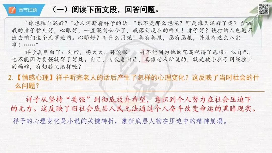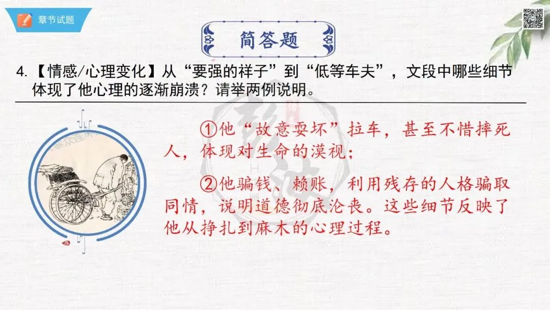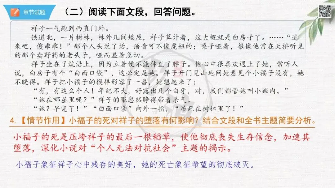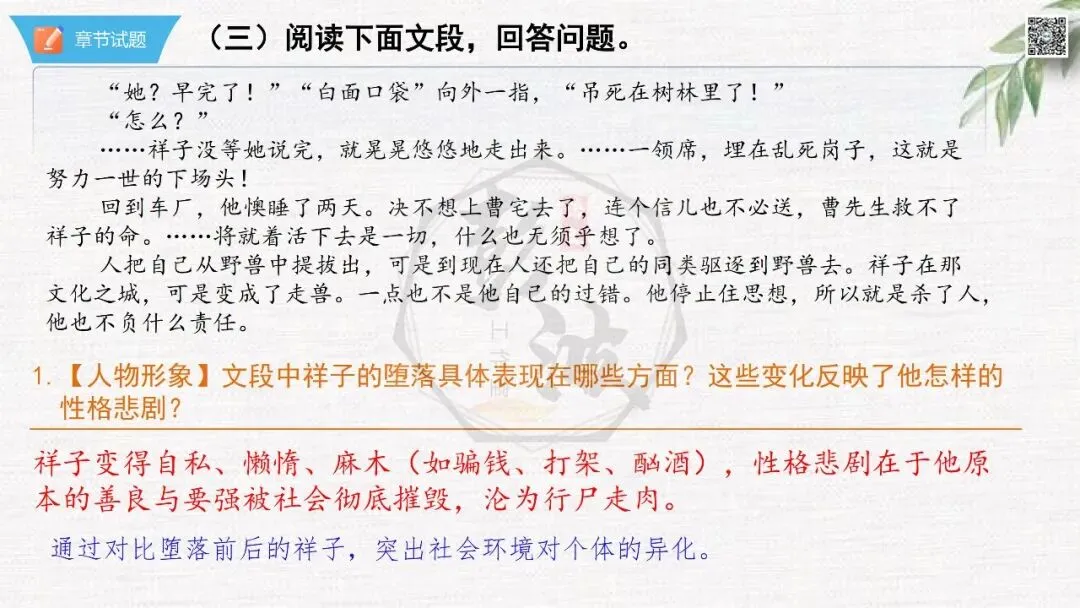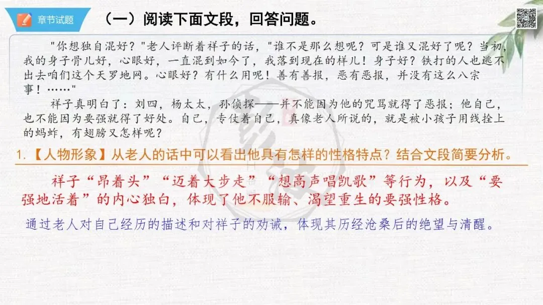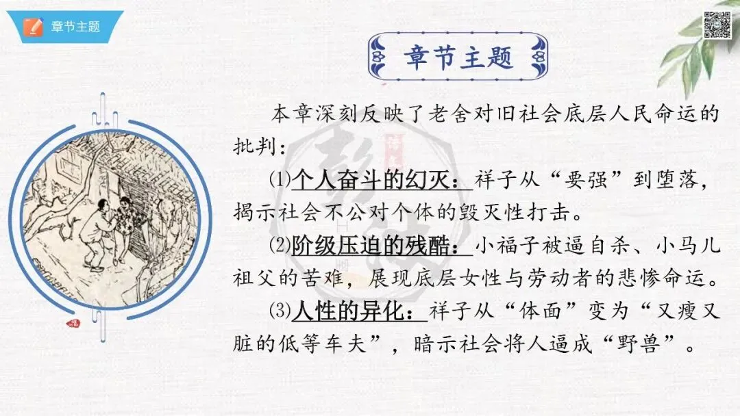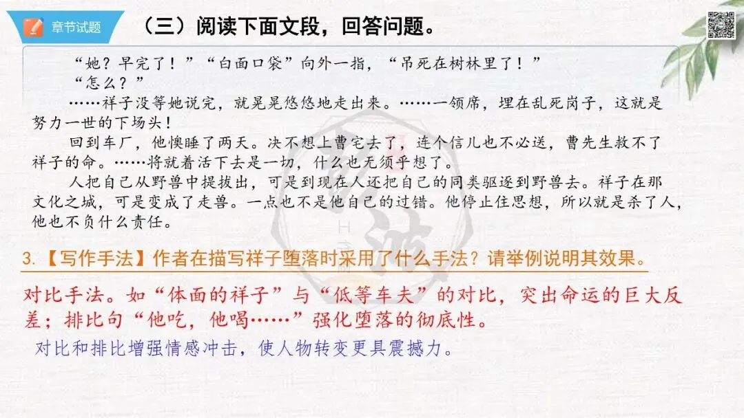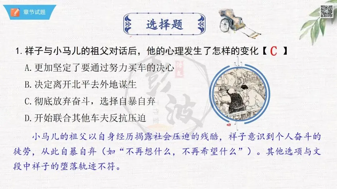 七年级下【骆驼祥子】第23章-情节导读+人物形象+语句赏析+章节试题