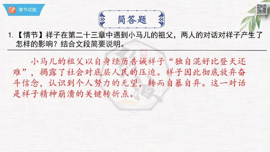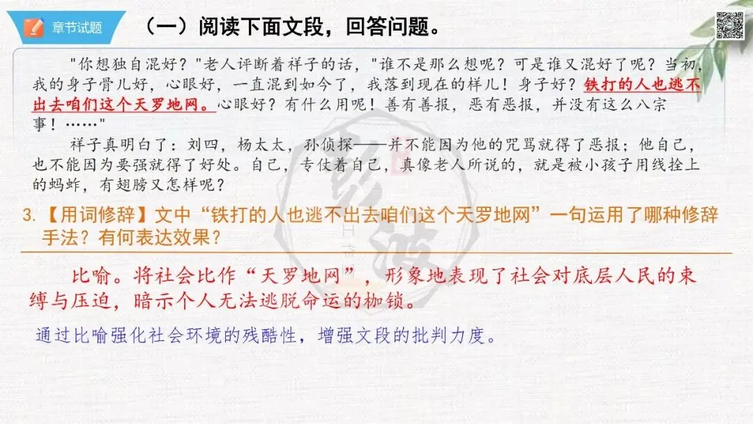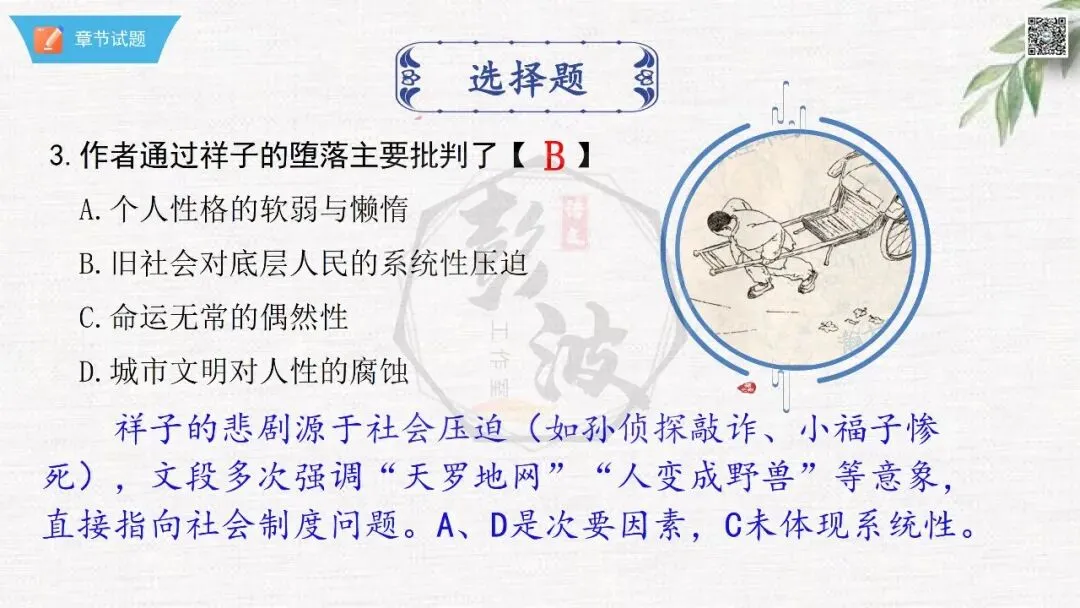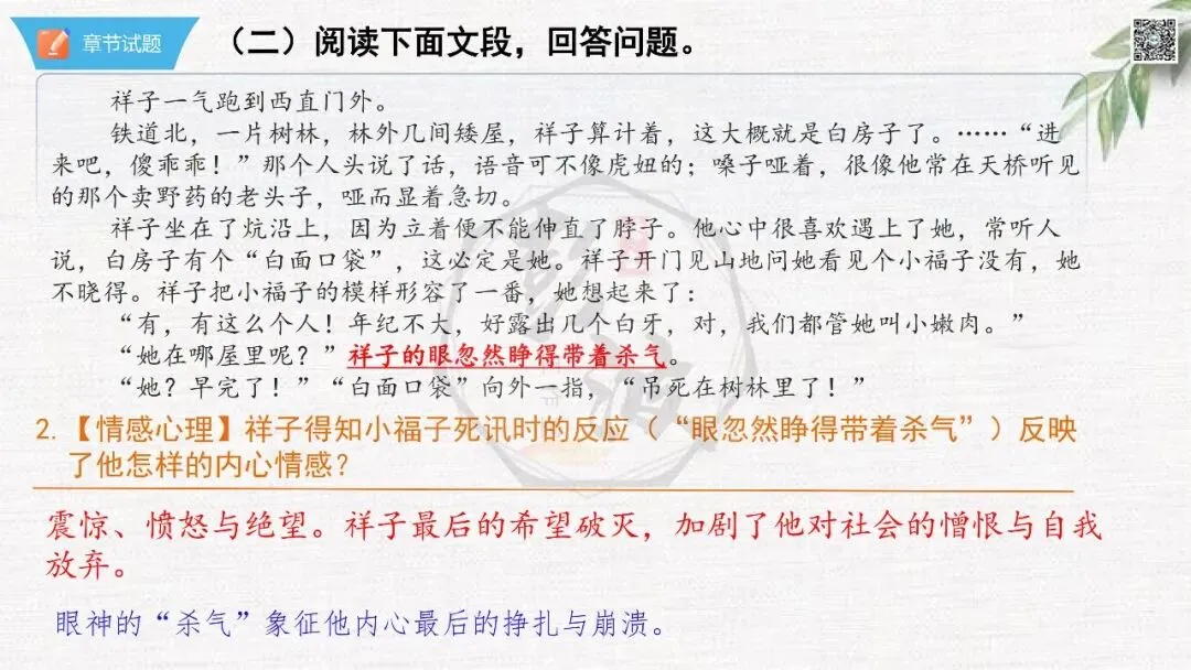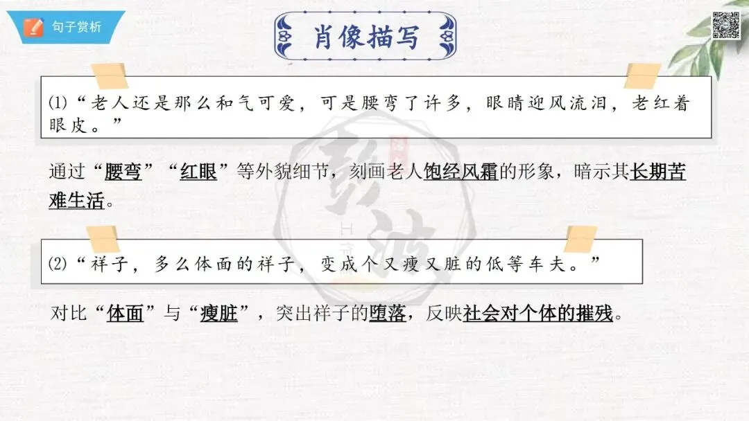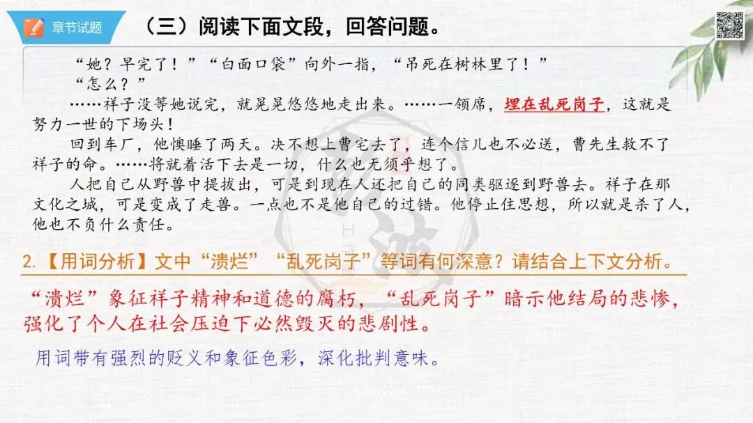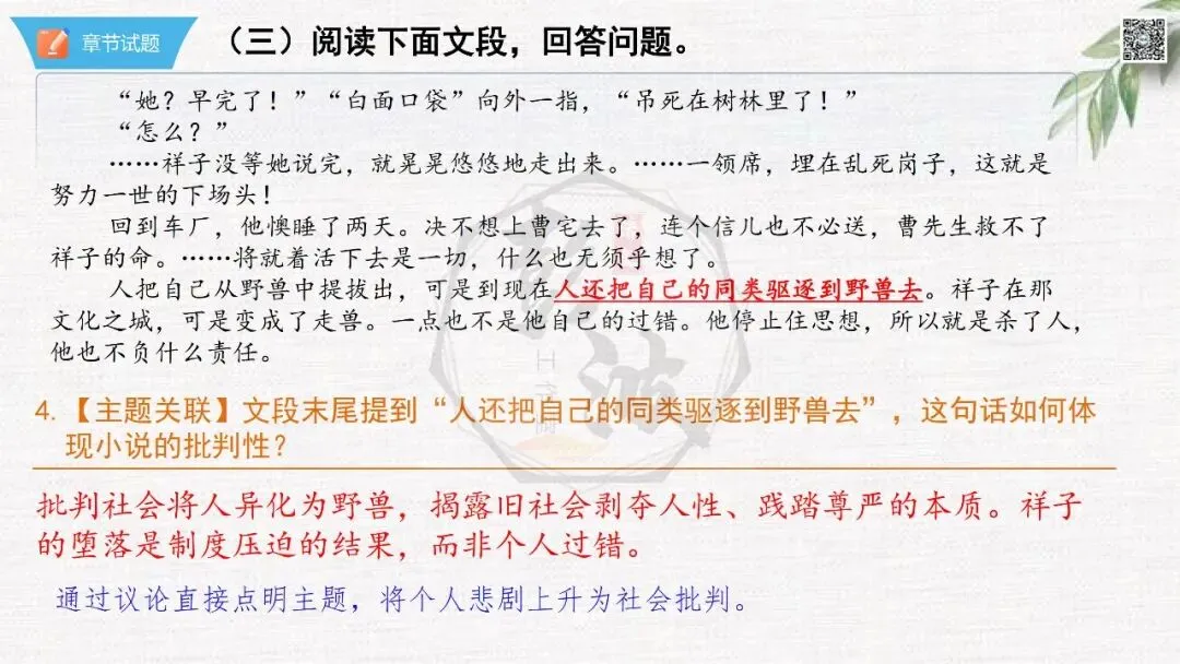 七年级下【骆驼祥子】第23章-情节导读+人物形象+语句赏析+章节试题