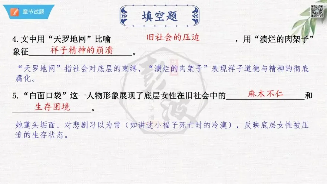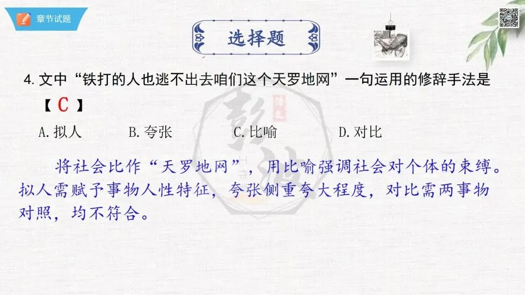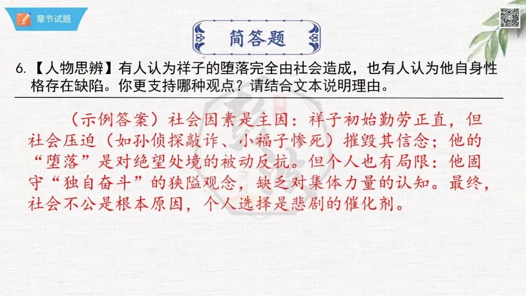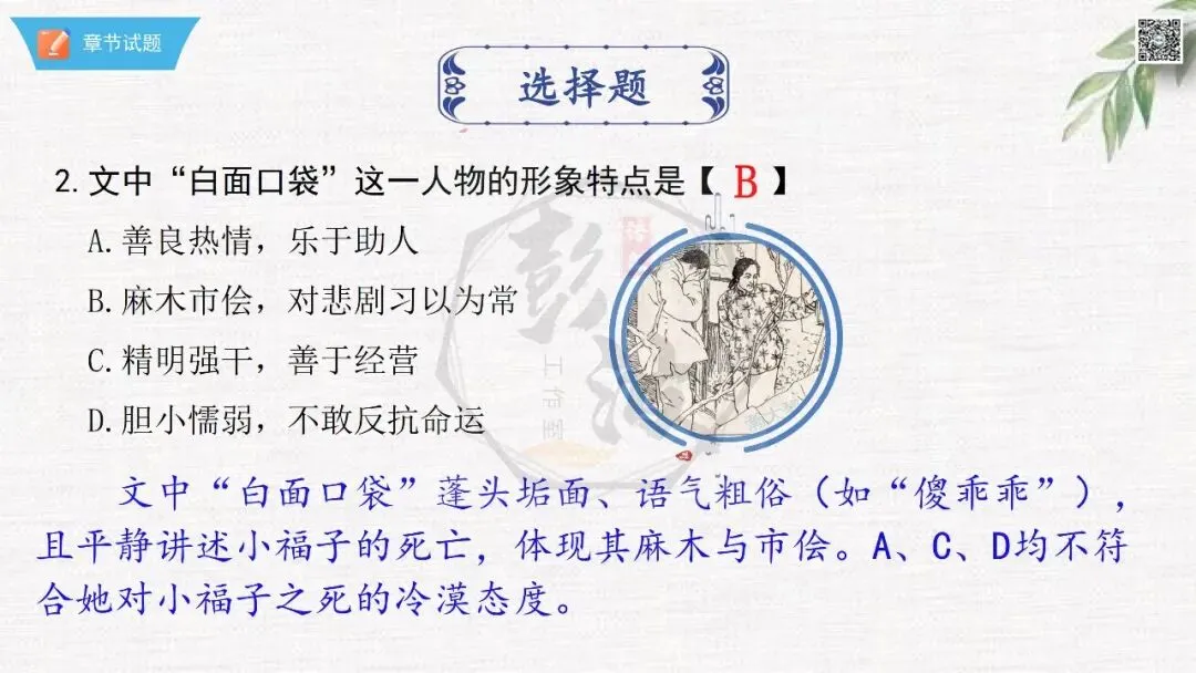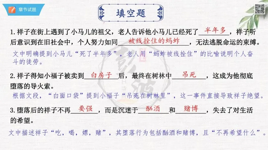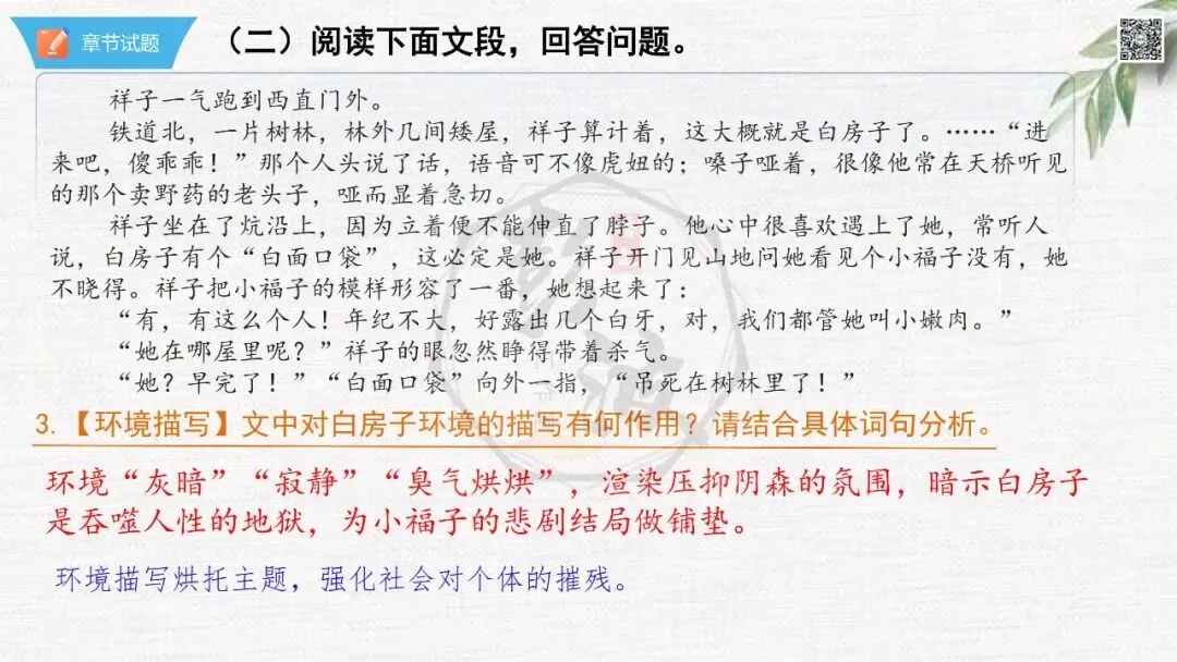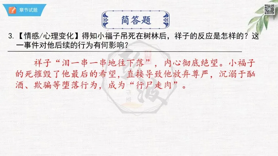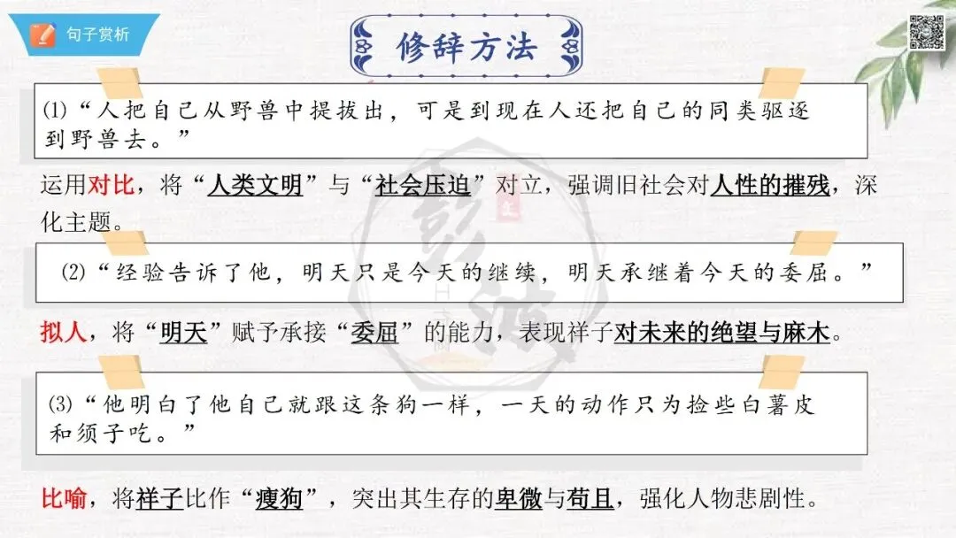 七年级下【骆驼祥子】第23章-情节导读+人物形象+语句赏析+章节试题