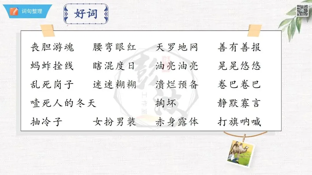 当前位置:首页>课件>七年级下【骆驼祥子】章节课件-第23章-情节导读+人物形象+语句赏析+章节试题
