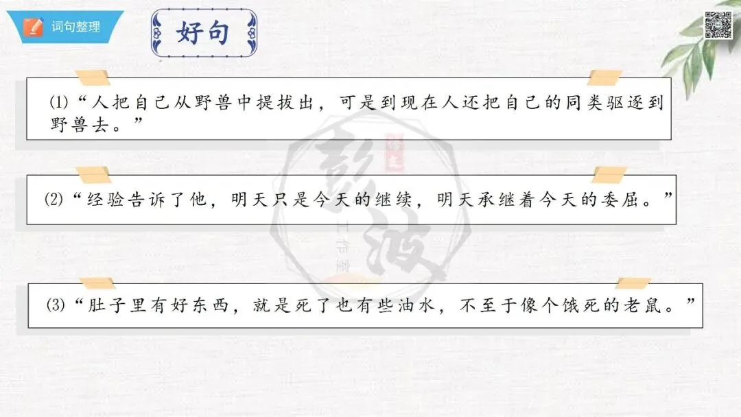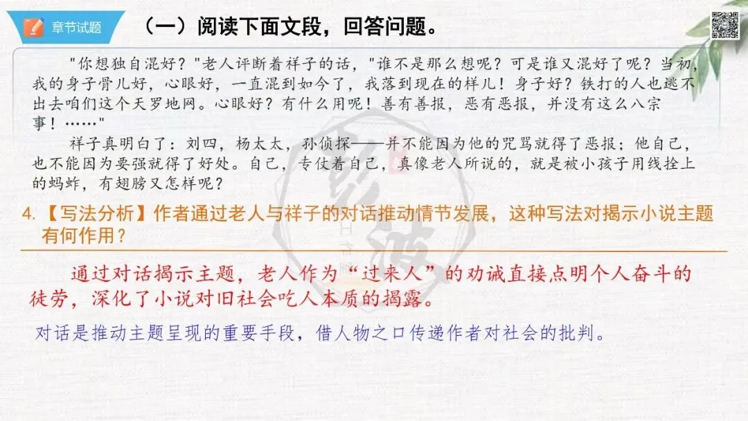七年级下【骆驼祥子】第24章-情节导读+人物形象+语句赏析+章节试题