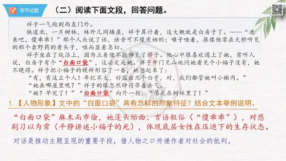 七年级下【骆驼祥子】第7章-情节导读+人物形象+语句赏析+章节试题