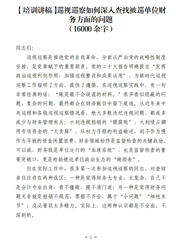 根据个别巡友要求,整理了一篇关于《巡视巡察如何深入查找被巡单位财务方面的问题》的培训课件,有思路、方法、案例等。