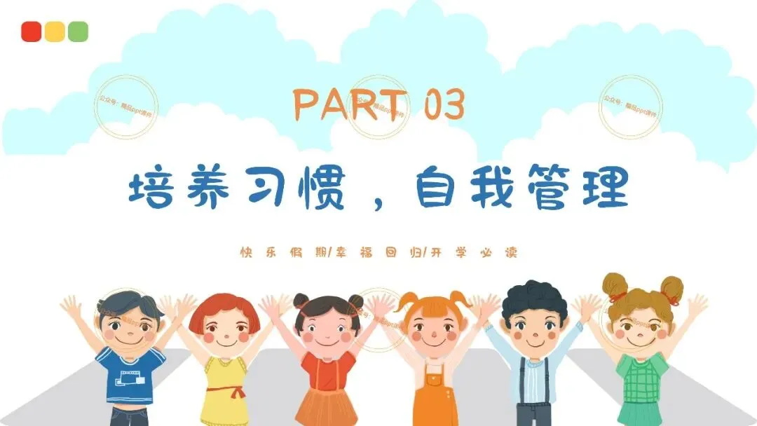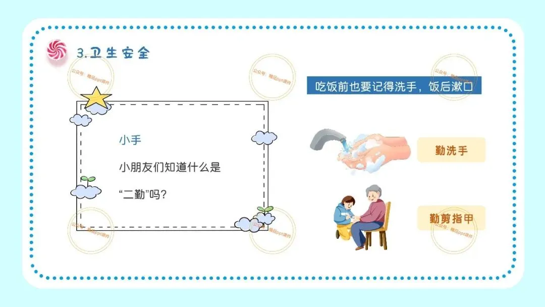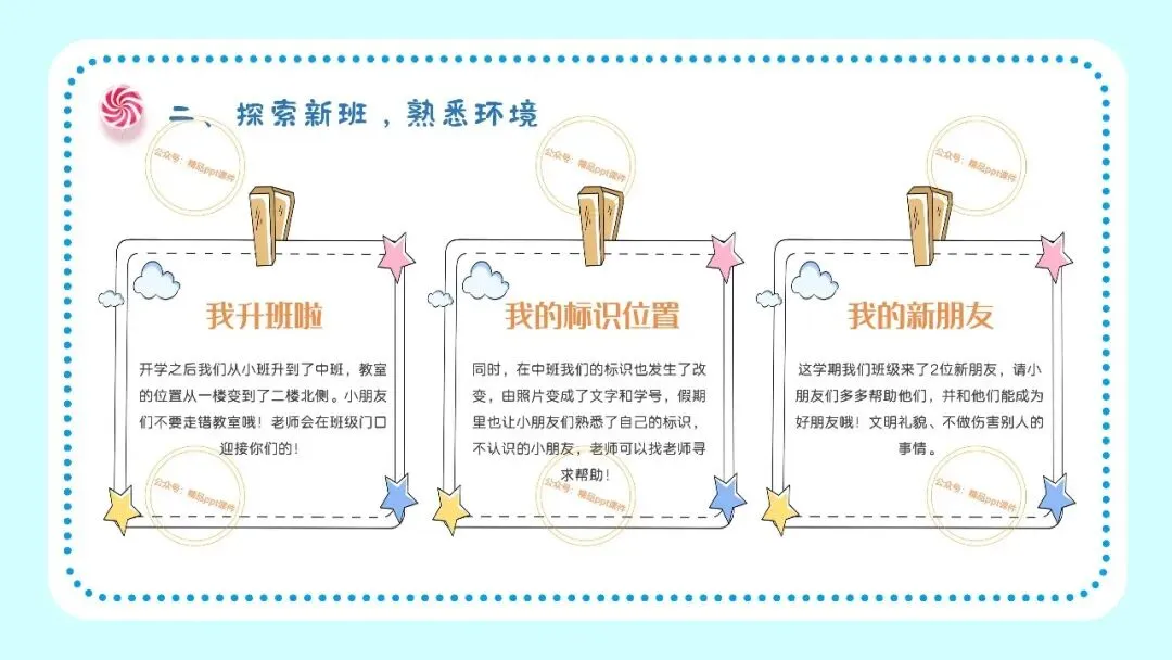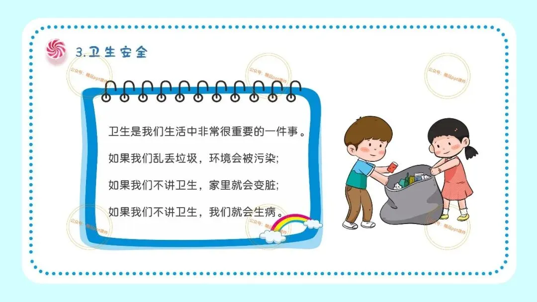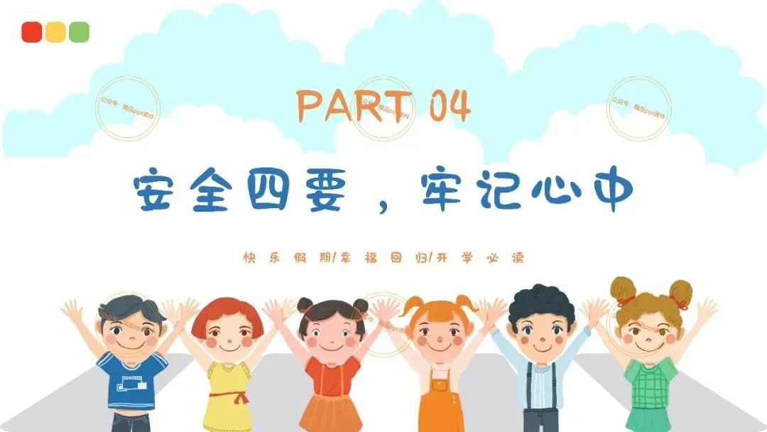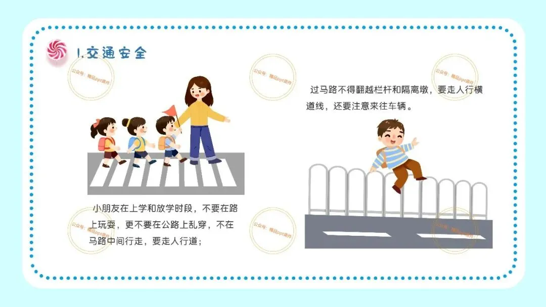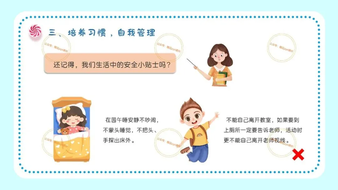 2、本公众号成立的初衷是为广大ppt使用者提升工作效率,所发布的课件资源仅供学习交流禁止用于商业用途,有偿所得用来维系公众号运营所支出的人工成本,性质为买家友情赞助后获取的信息差而非售卖资源的费用。同意此声明后即可下载本期幼儿园开学安全教育培训第一课ppt。如有侵犯您的权利,请联系小沐老师。
