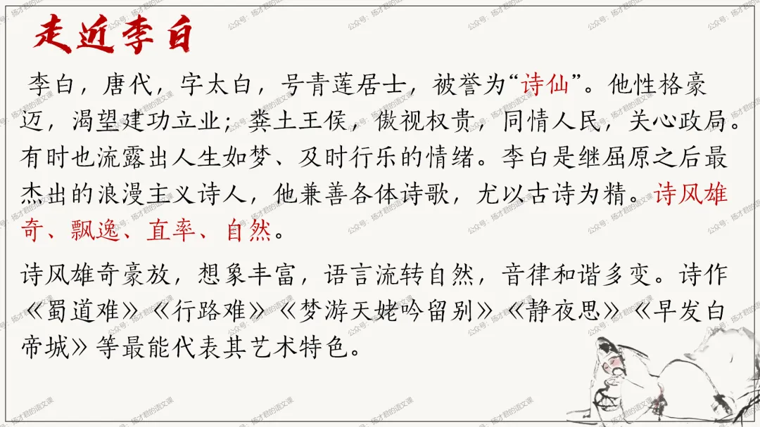 1.知人论世,了解诗人的个性及创作风格;