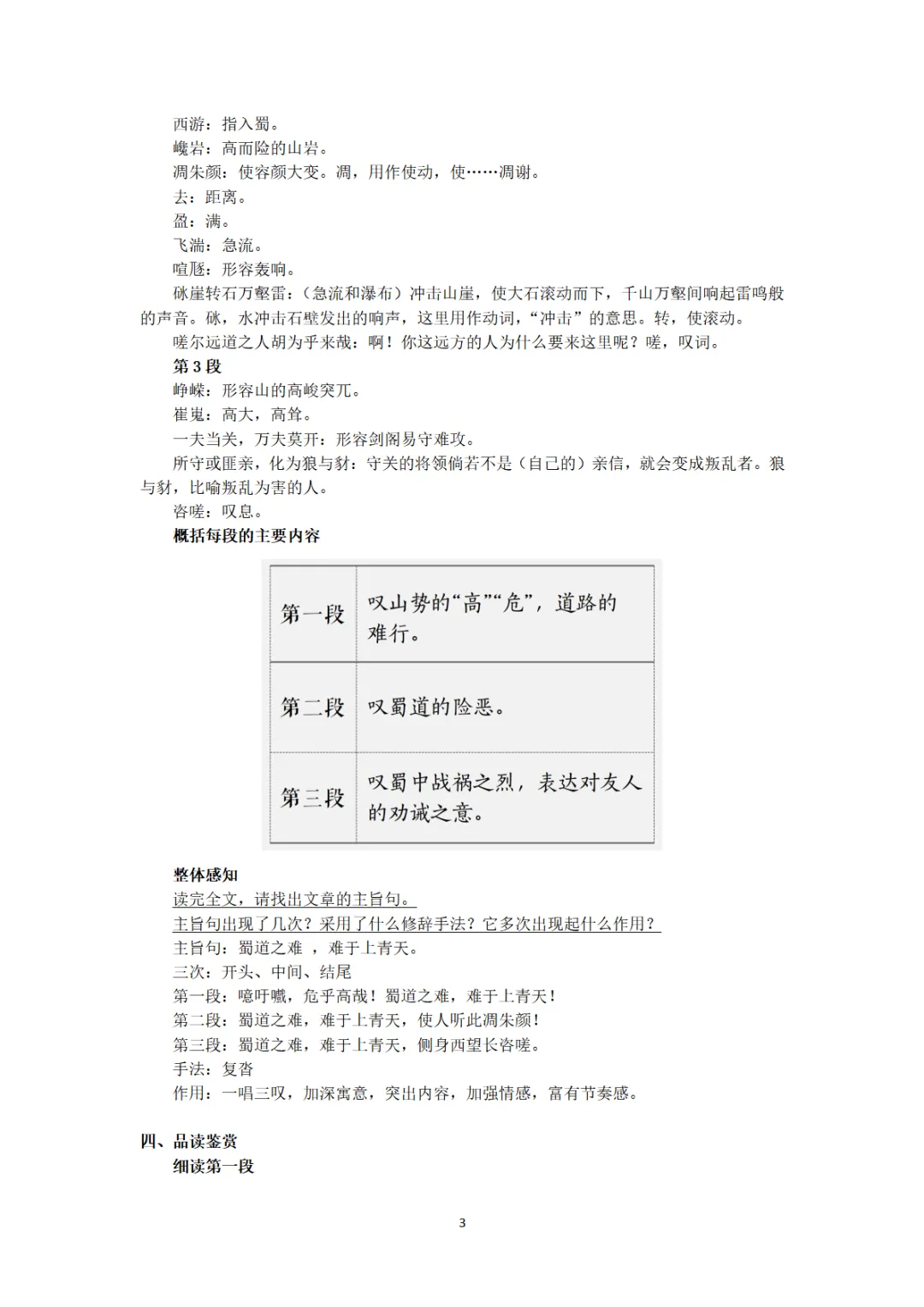 3.参照注释,精读全诗,大体读懂诗意;