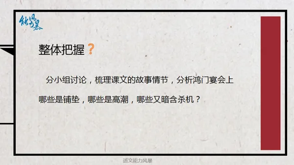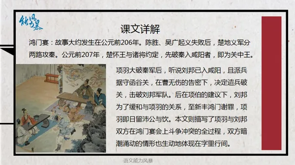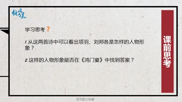 《鸿门宴》是汉代史传文学的经典,波澜起伏的宴会暗藏刀光剑影,不仅勾勒出楚汉争霸的风云变局,更刻画出生动立体的人物群像。跌宕情节、精妙叙事、深远意蕴,都是高中语文教学的重点。这份精心打磨的课件,助力老师理清脉络、精讲人物,让课堂更生动高效。