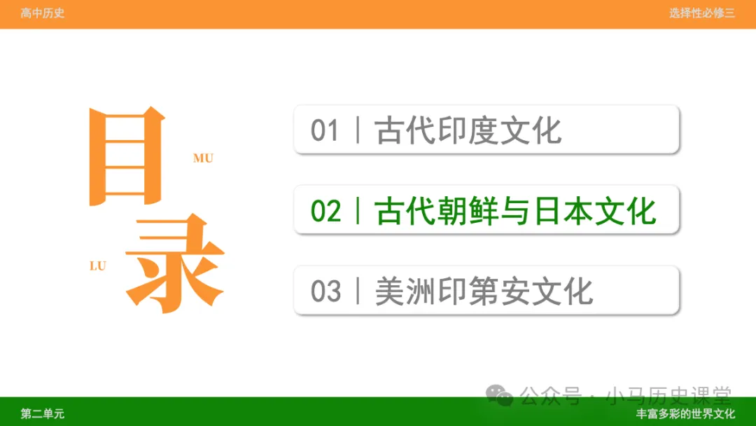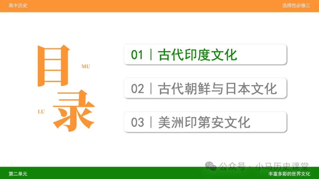 大家好,我是小马老师,这次为大家带来的是高中历史选必三的第5课《南亚东亚与美洲的文化》。