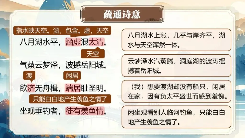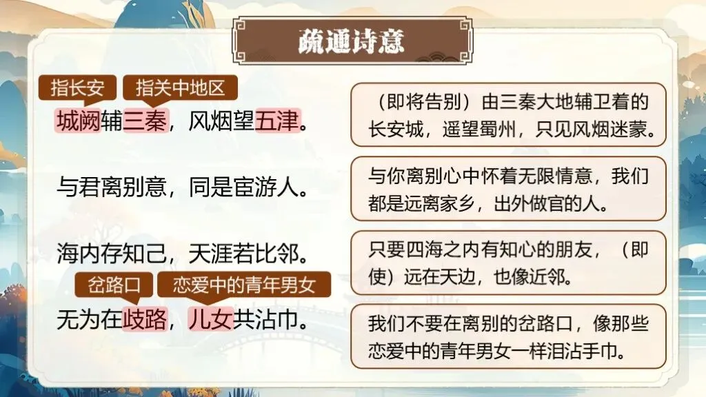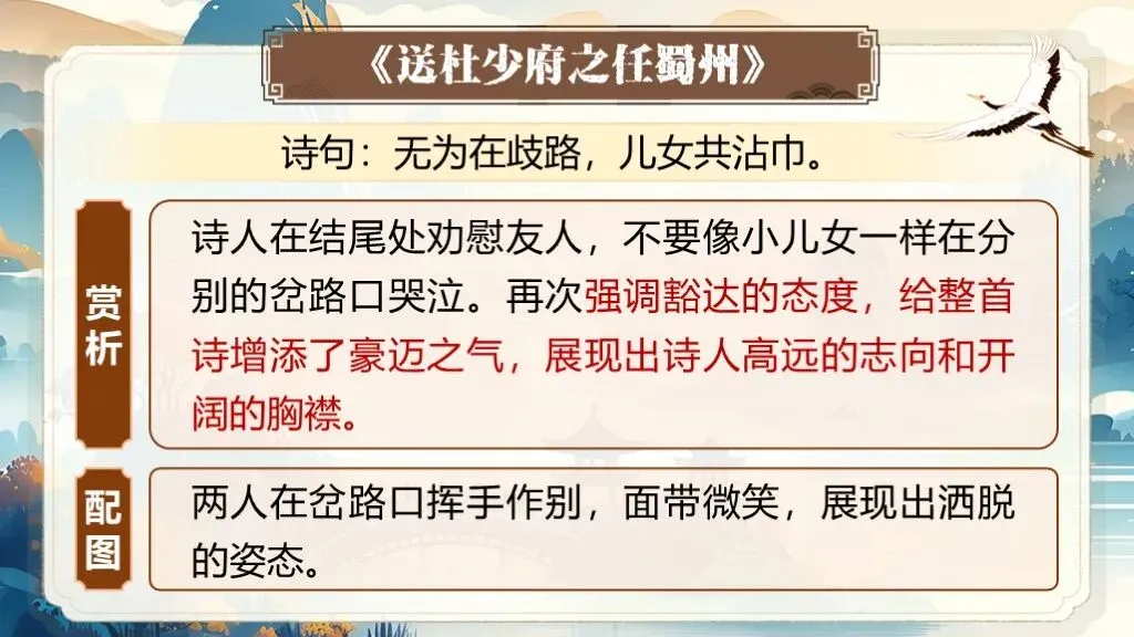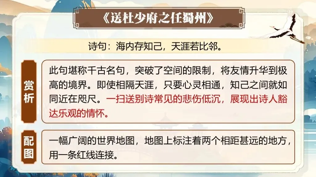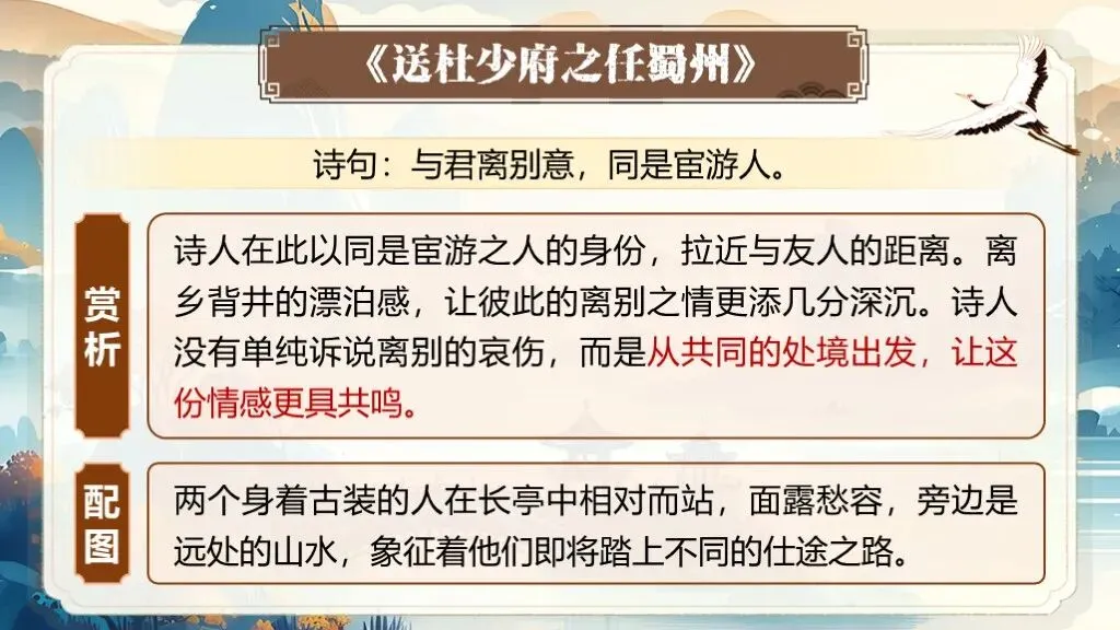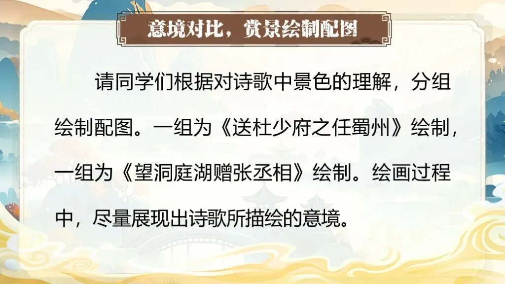 《送杜少府之任蜀州》《望洞庭湖赠张丞相》联读这两首诗,以穿越回唐朝跟随诗人脚步的方式,创设生动的学习情境。这种方式能激发学生的好奇心和学习兴趣,让他们更主动地参与到诗歌学习中,感受诗人情感世界!