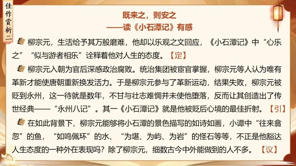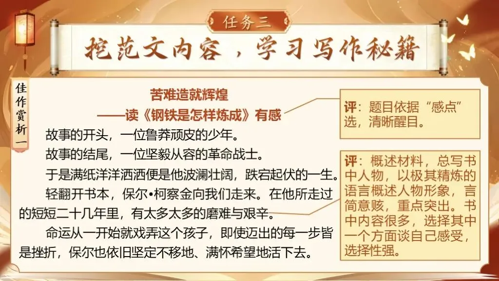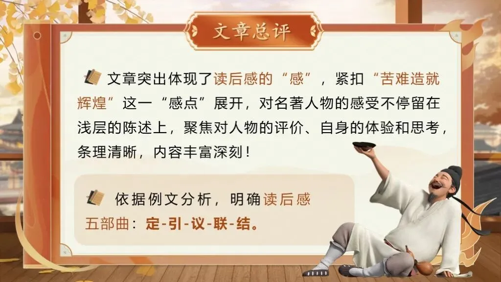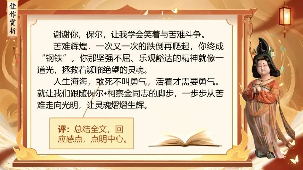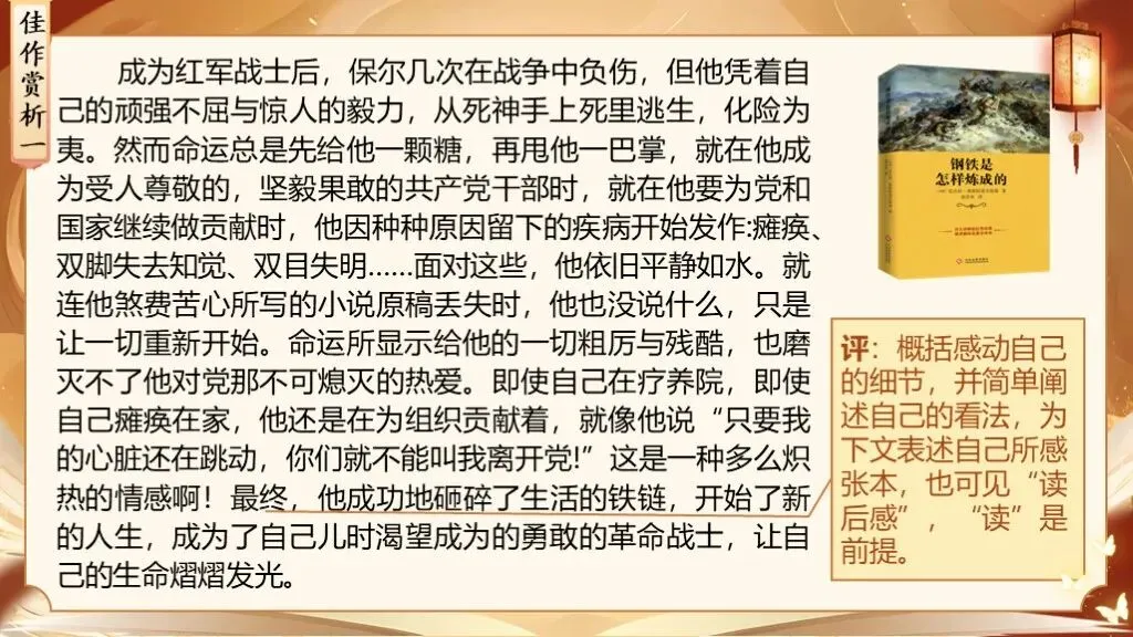 评价语、过渡语:读一本好书,就像一道美味佳肴正好迎合了你的味蕾,读的过程中,你会发现每一口都是享受。吃美食,必定要经过舌尖的识别、味蕾的品赏,才能品味出其好处,读书也是一样,要细细的读,慢慢的品味才能感受深刻、得到启迪。而这个过程就是读书的再创造,被我们称之为——读后感。