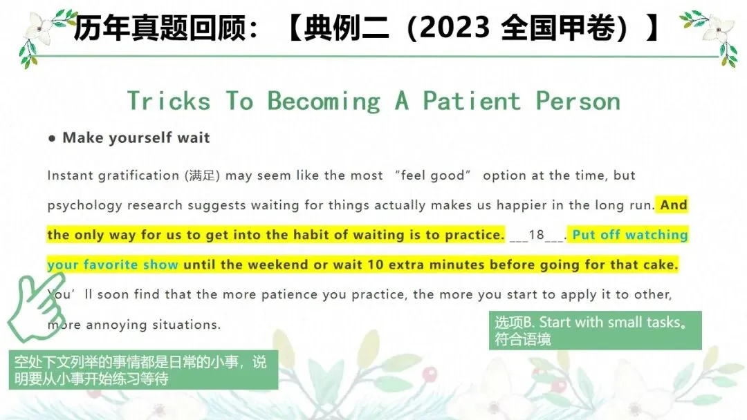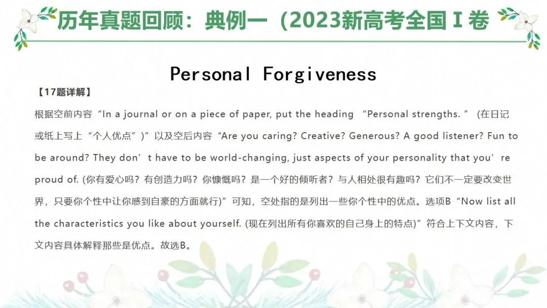 1. 整理不易,如果觉得不错的话,请分享给更多需要的人,谢谢大家对我们的支持!如需深入学习新高考英语各题型备考方法,欢迎添加个人微信加入每日高中英语学习交流群,同时,用户如需获取此课件原件,欢迎登陆公众号平台对应微信小程序迈克英语,用户输入相应课件名称“关键词”即可自主下载。