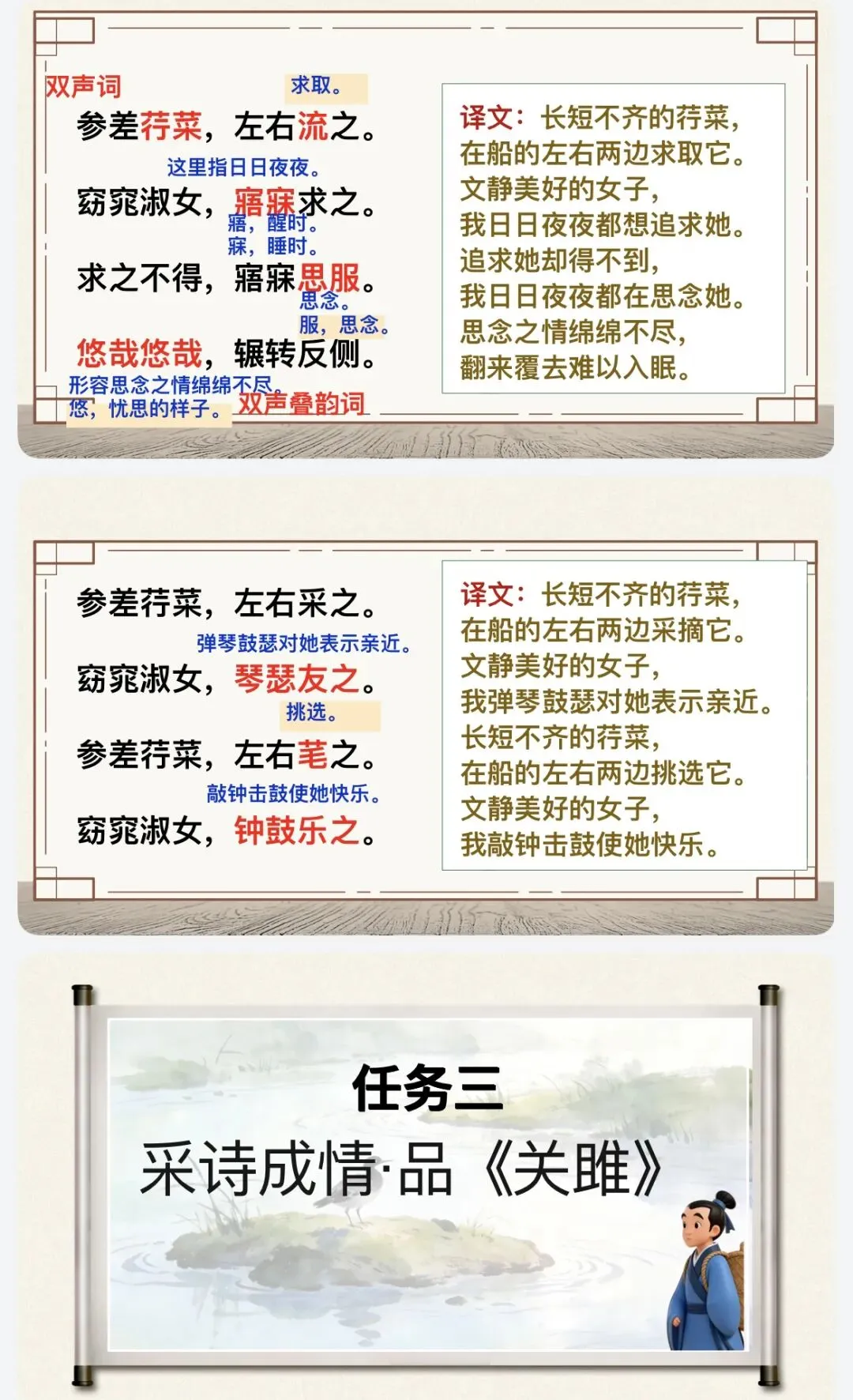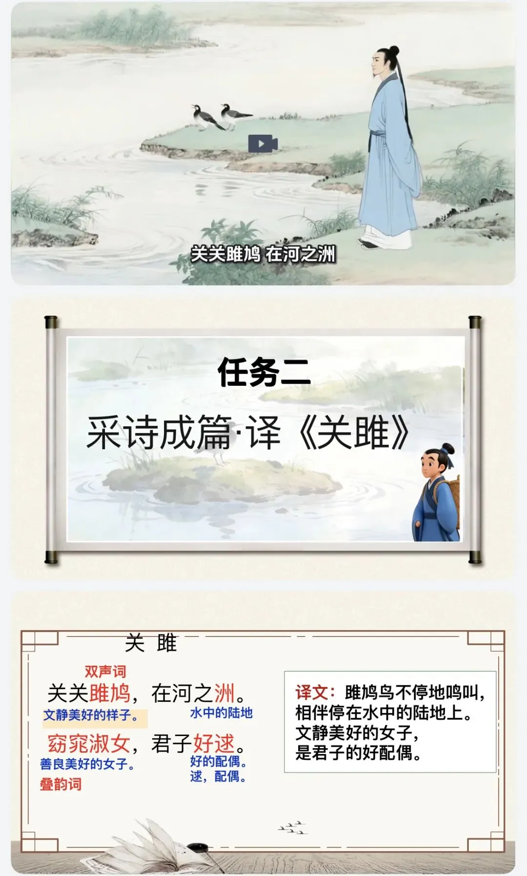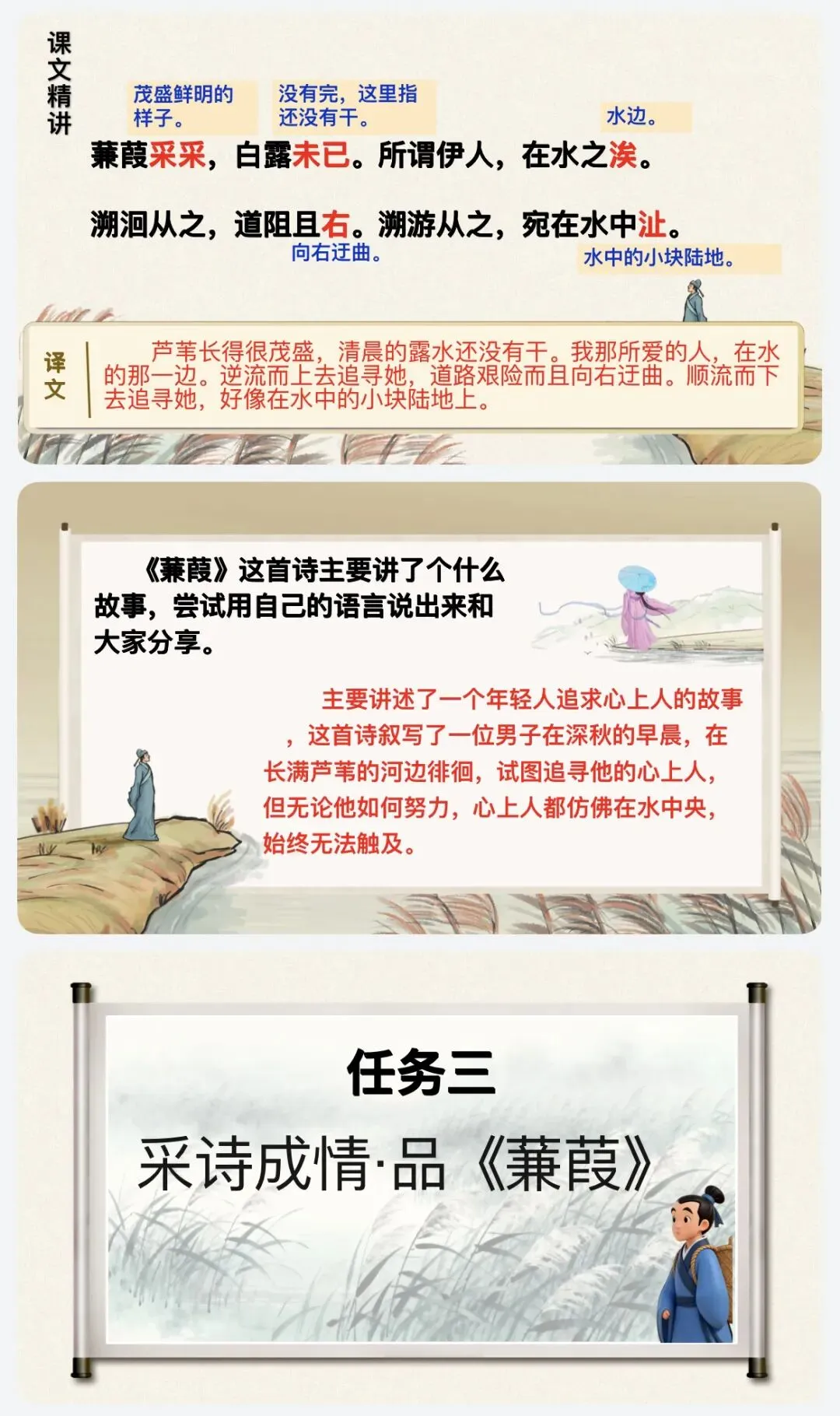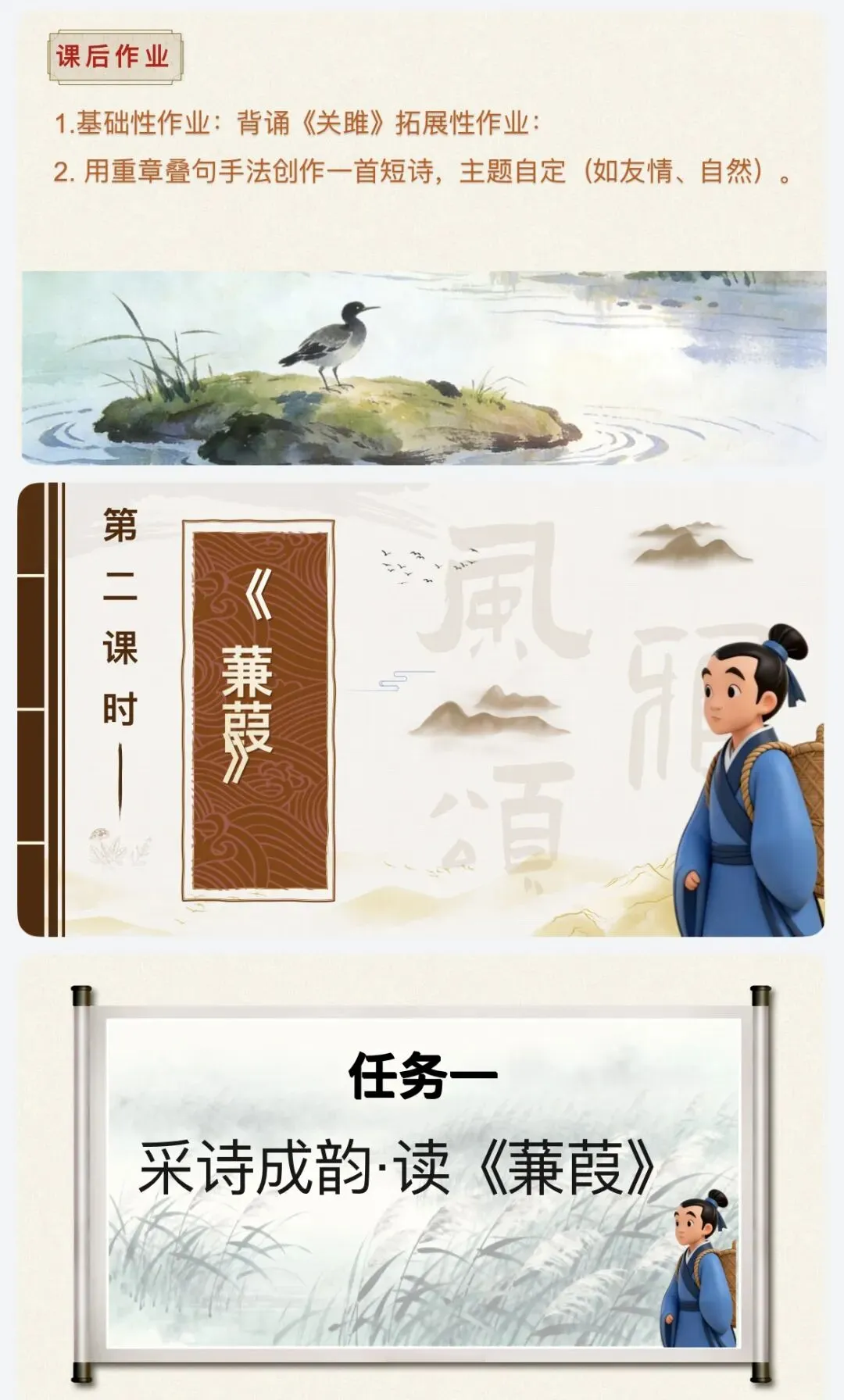 >课件|八下语文12《诗经》二首(《关雎》《蒹葭》精美公开课)