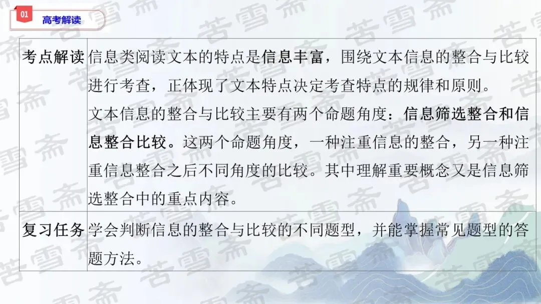 精品课件|信息类文本阅读专题——第三讲:《理解文中重要概念与信息的整合与比较》教学PPT