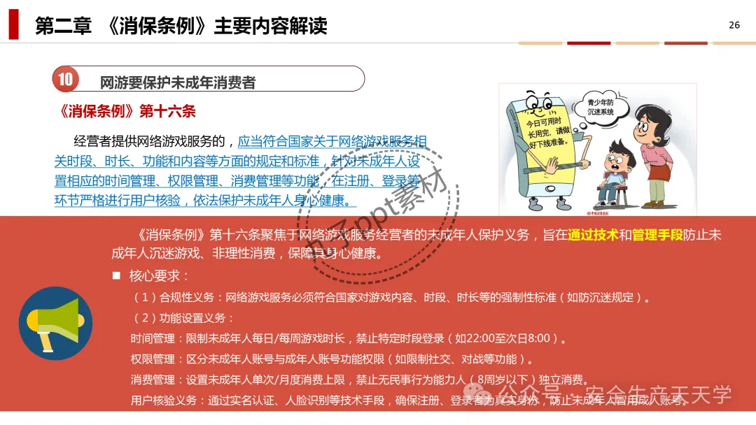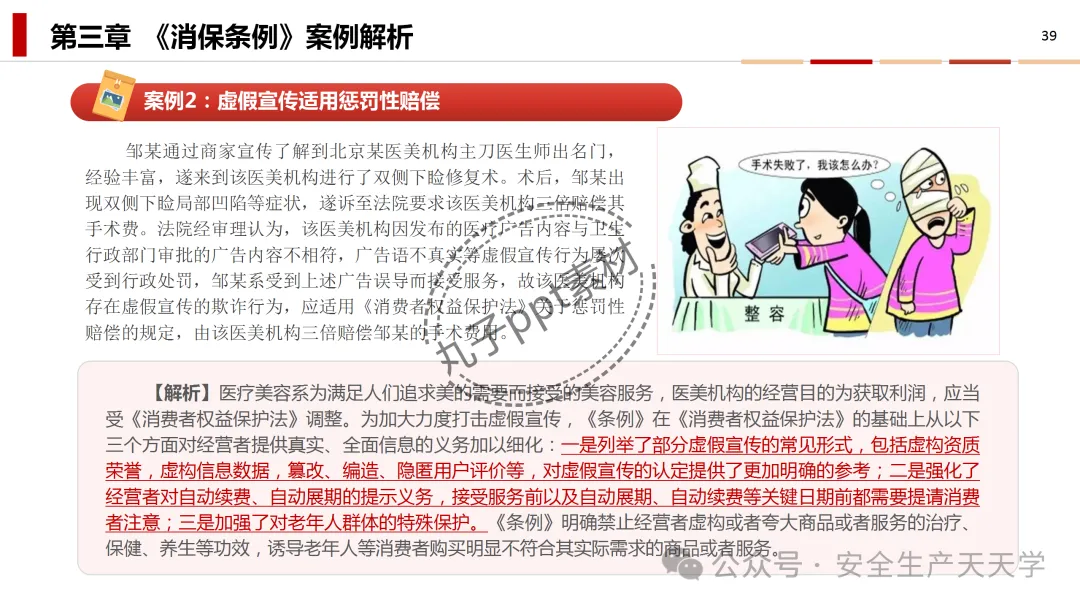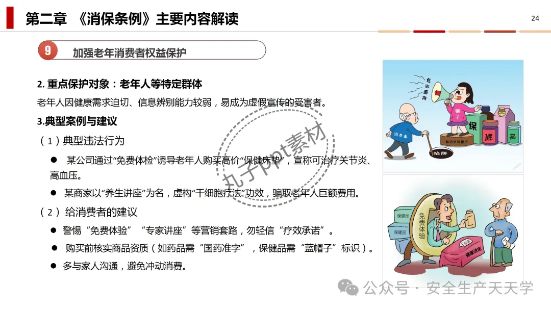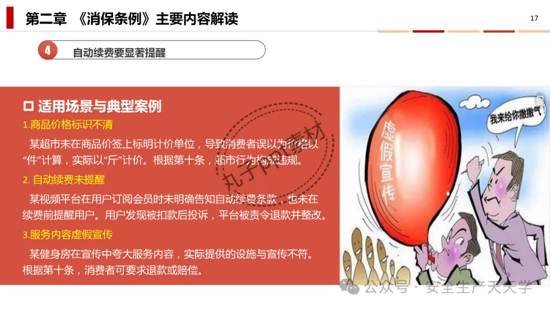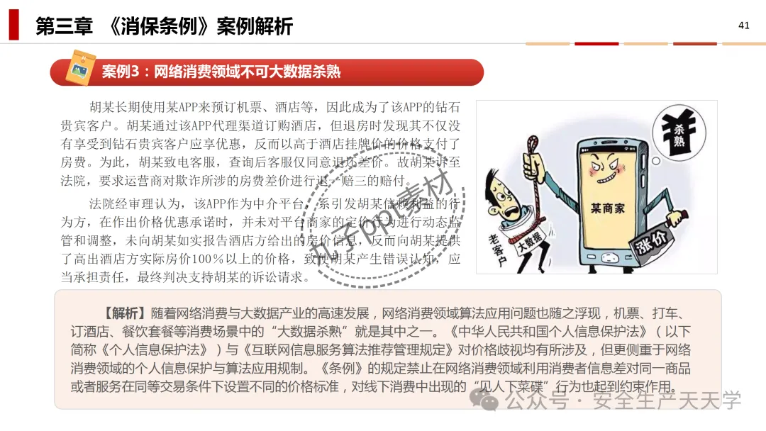 本PPT共46页,含对应WORD文稿43页约2万余字,针对日常生活中自动续费、直播购物踩坑、虚假宣传、未成年游戏充值、欺诈老年人、保护个人信息、禁止“大数据杀熟”等问题,进行普法教育,结合具体案例分析,理解条款的应用,ppt直观易懂,图文并茂,设计精美,无水印,易于编辑修改,原创新版。