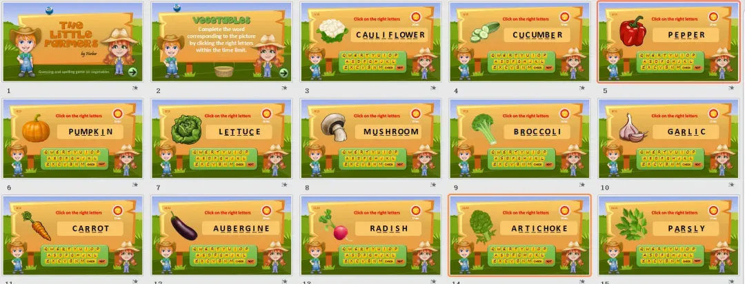 这次准备的PPT一共有60个,家长老师打开就能用,带着孩子互动,把平时枯燥的单词学习,变得有趣极了!