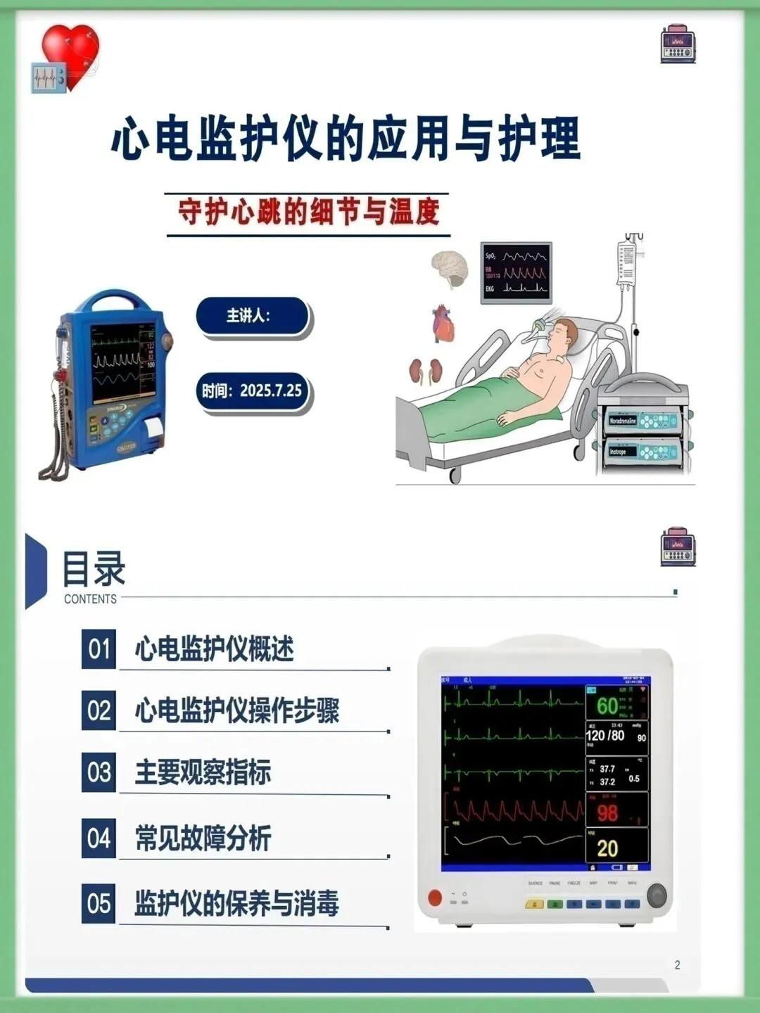 心电监护仪的应用与护理ppt模板课件模板(共60页)