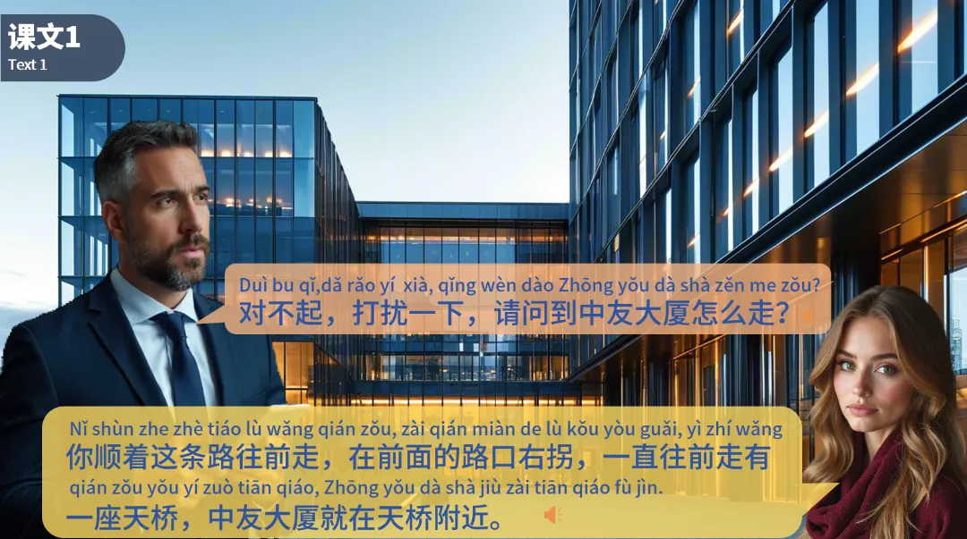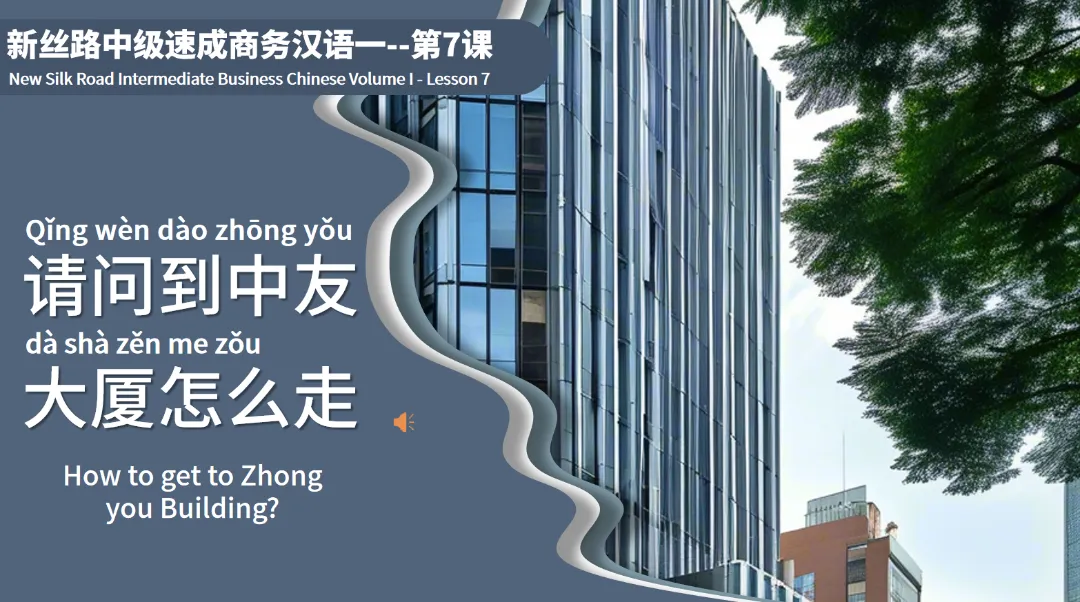 今天,我们为大家推荐新丝路商务汉语中级课件中的一课——“请问到中友大厦怎么走”。