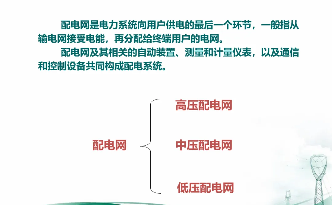 配电系统是电力系统的末端环节,承担着将电能安全、可靠地输送至终端用户的重要职责。本课程将系统介绍配电设备的核心知识体系。