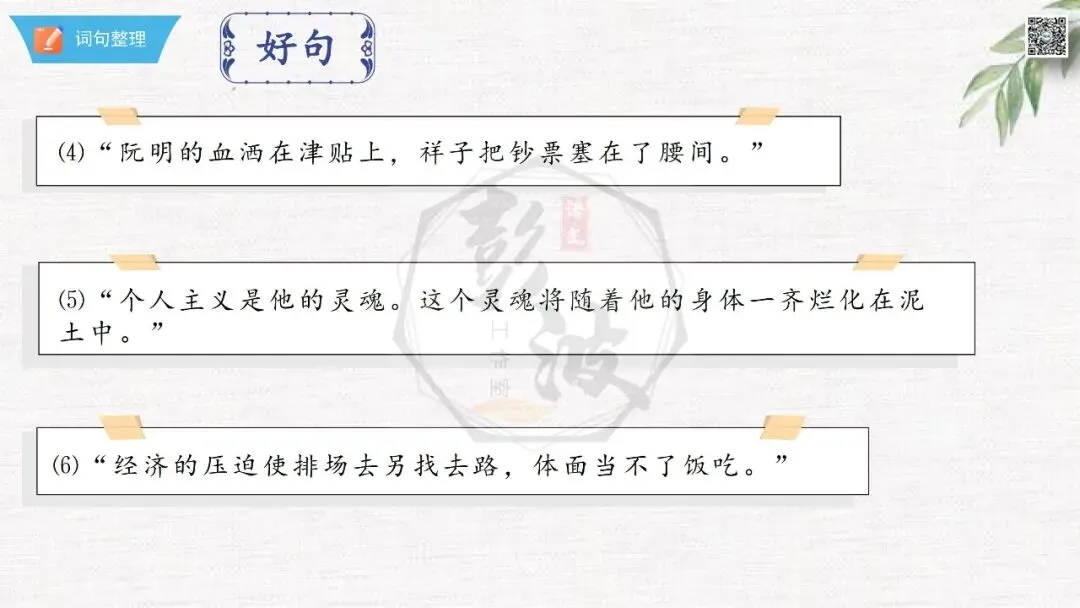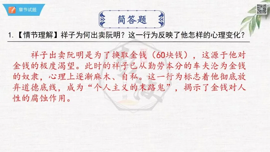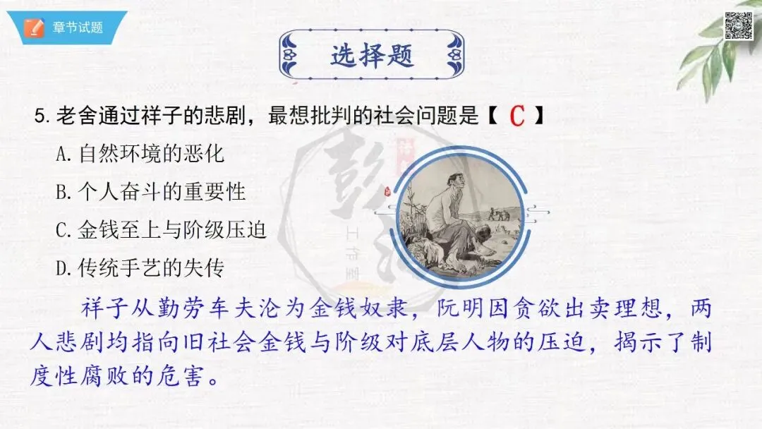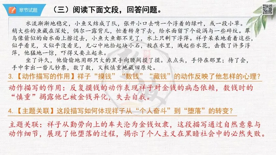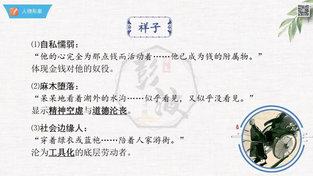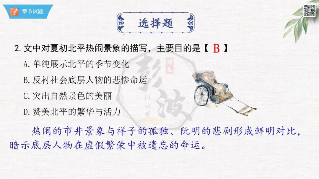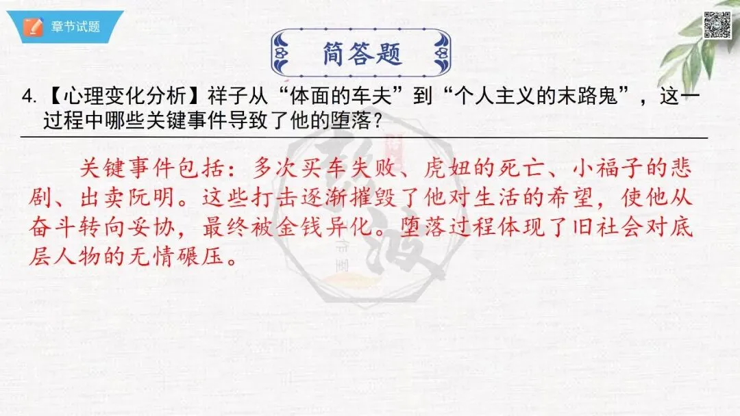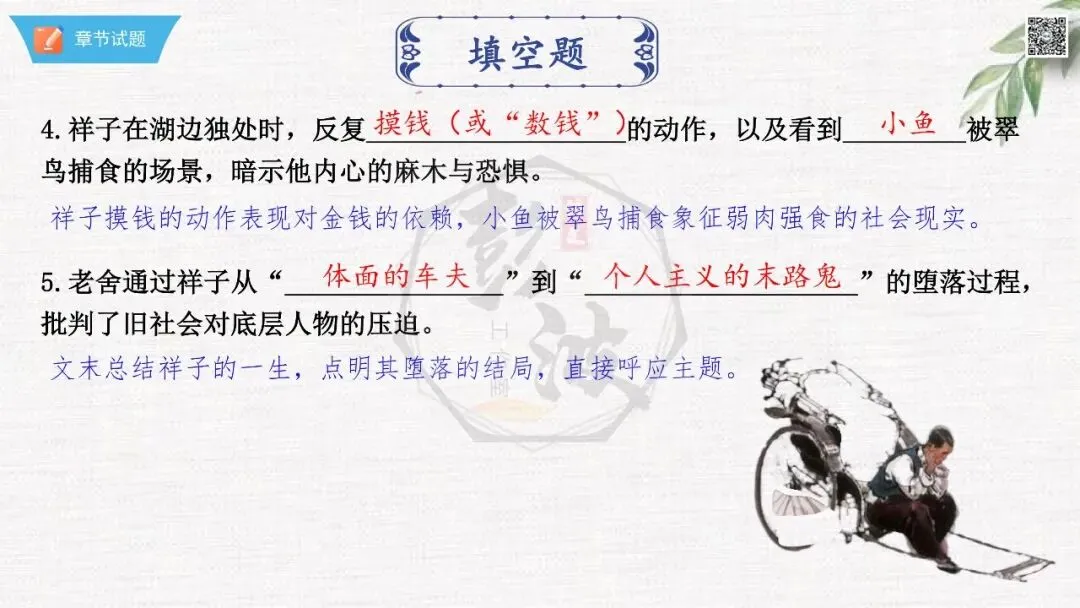 ◆02《骆驼祥子》章节课件24章-情节梳理+人物形象+语句赏析+章节试题(PPT)(65元)
