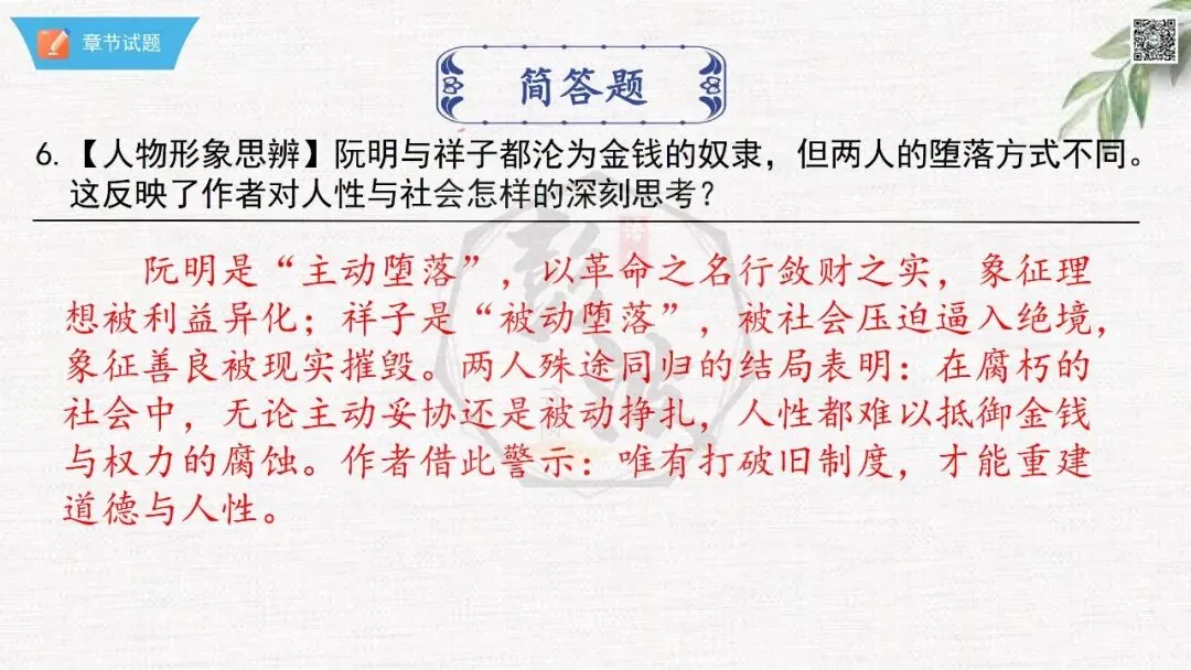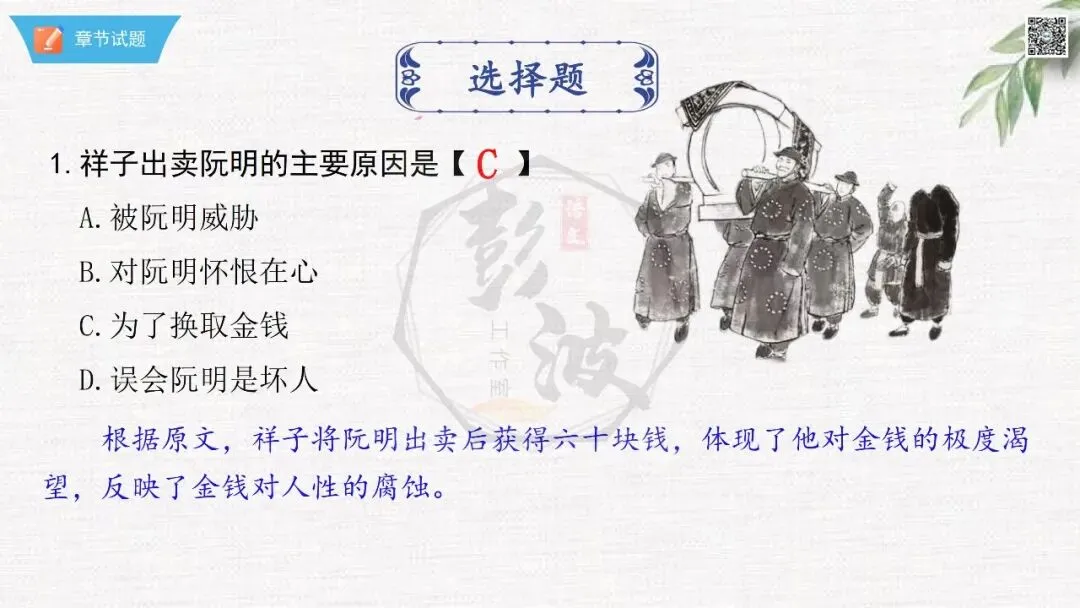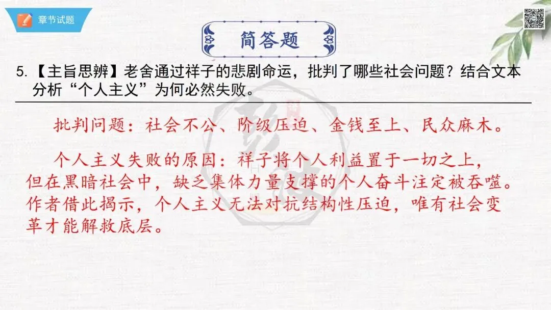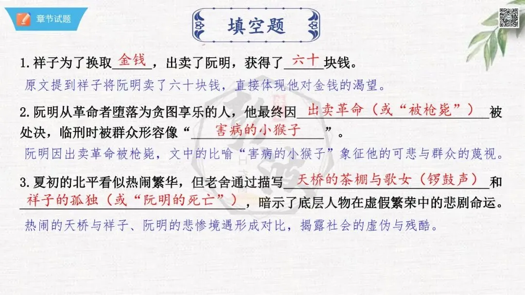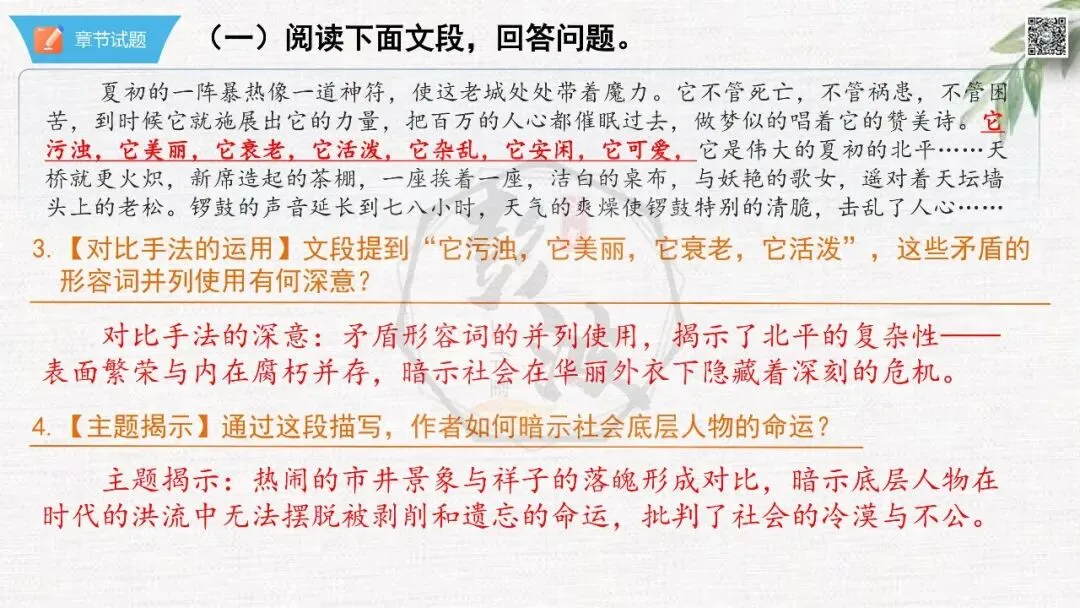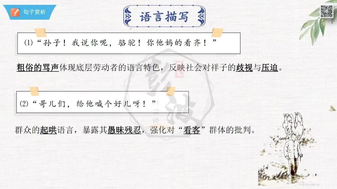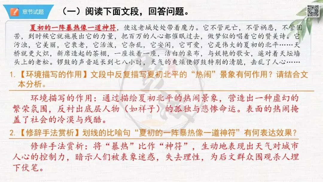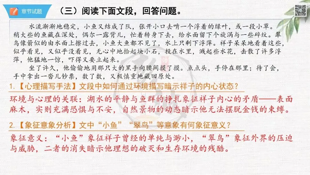 ◆02《骆驼祥子》章节课件24章-情节梳理+人物形象+语句赏析+章节试题(PPT)(65元)