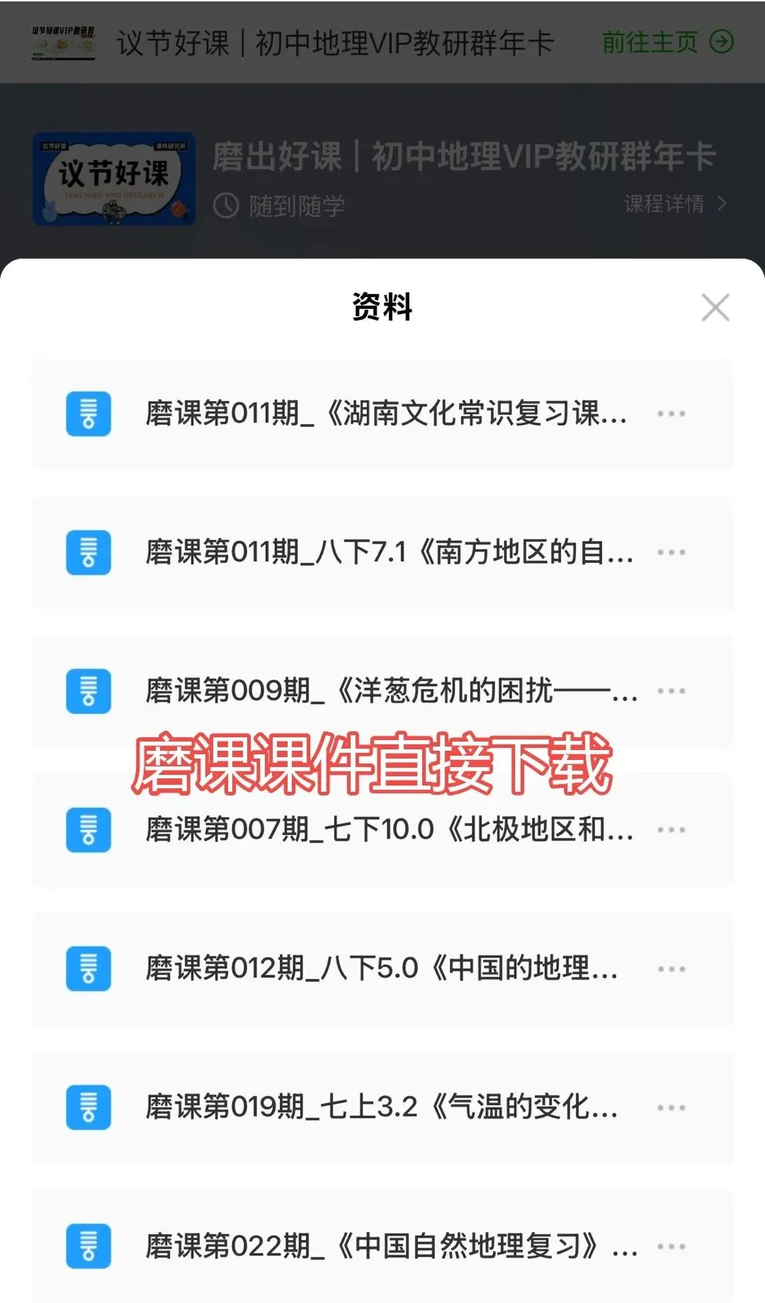 磨课活动是初中地理议节好课教研群的特色活动(仅对教研群用户开放),主要是帮助老师们把自己的教学内容打磨的更好。老师要参赛、公开课、展示课的话,会有很大的助力。
