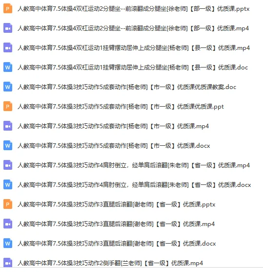 5.体操【共12位老师公开课教学视频+课件+教案】部分室外课无课件