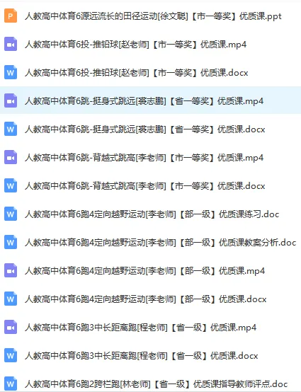 1.人教高中体育1-6章【共15位老师公开课教学视频+课件+教案】部分室外课无课件
