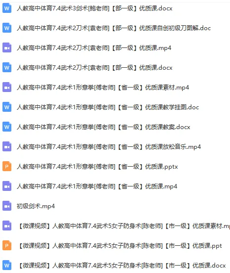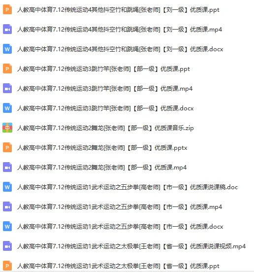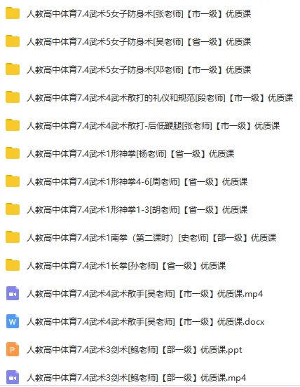8.武术【共15位老师公开课教学视频+课件+教案】部分室外课无课件