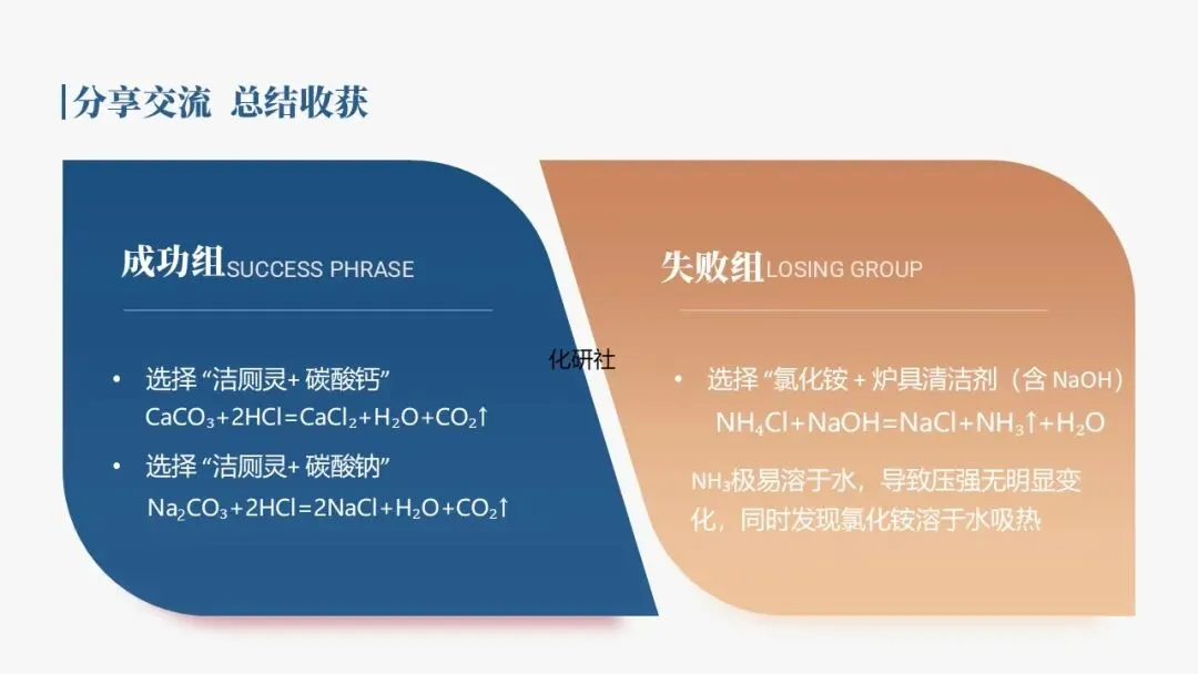 - 成果分享:各小组汇报实验结果,教师引导统一结论:小水包中的溶液呈酸性,白色粉末的溶液呈碱性。