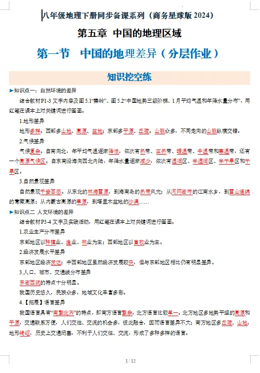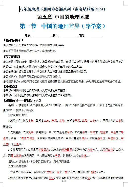 2026新版(晋教版)八年级地理下册课件+教案+导学案+分层作业【可下载打印】