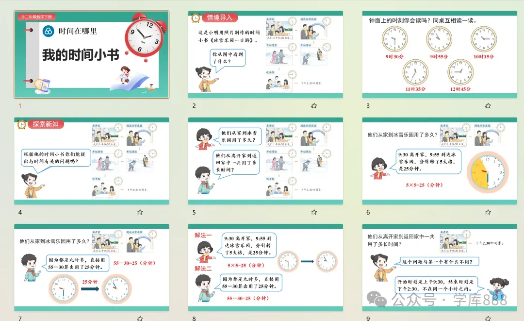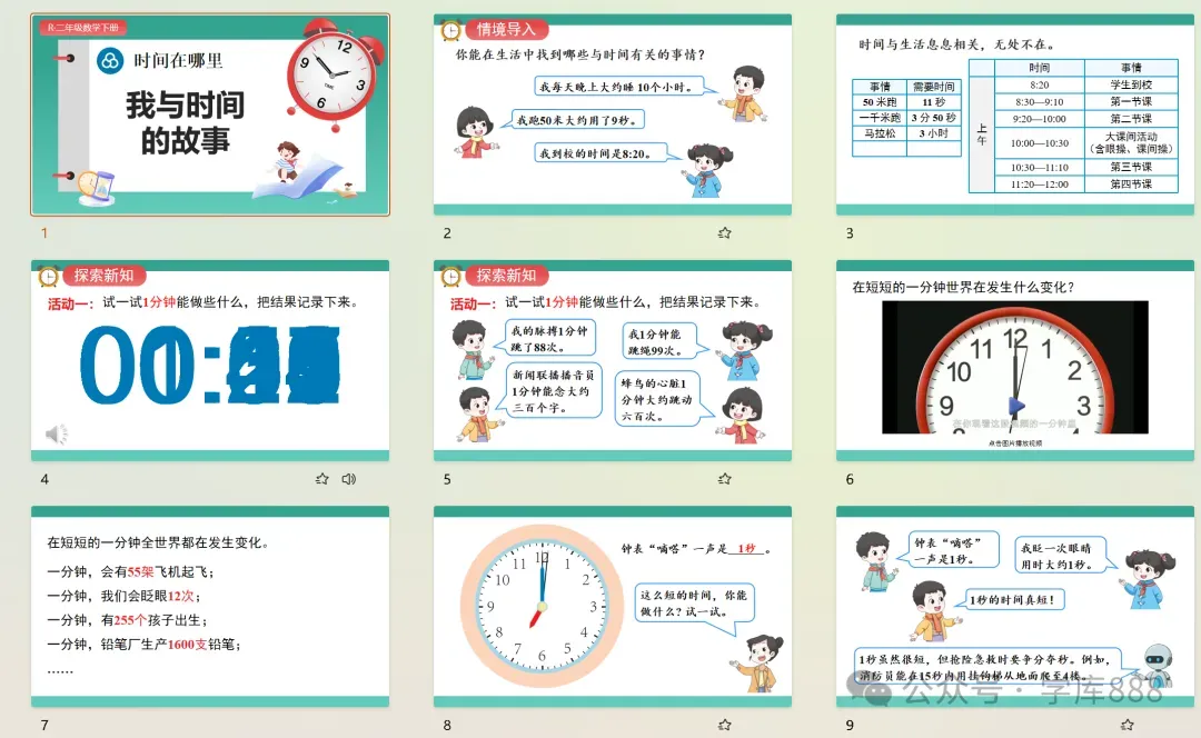 新教材:优化为“时间在哪里”核心实践单元,新增“数学游戏”“数学连环画”配套模块