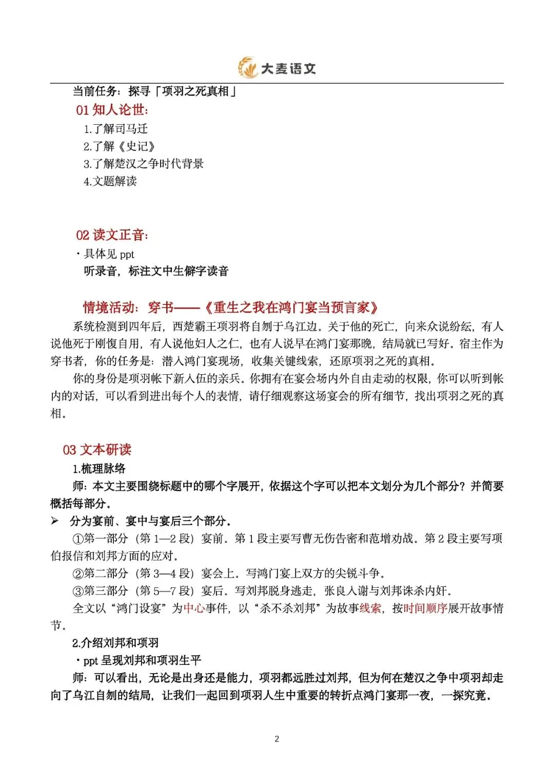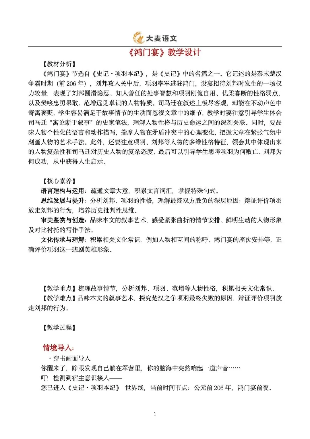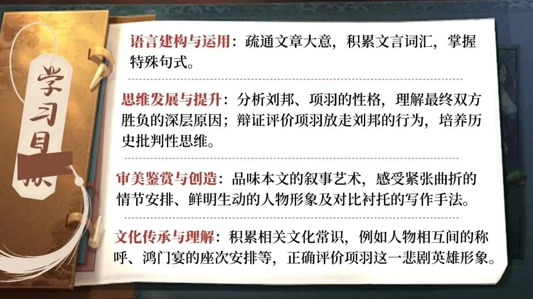 很多老师上《鸿门宴》时,都会遇到同一个难题:故事很精彩,人物也鲜明,可学生读完往往只记住了“项庄舞剑”“樊哙闯帐”,却很难真正理解——为什么项羽会输?