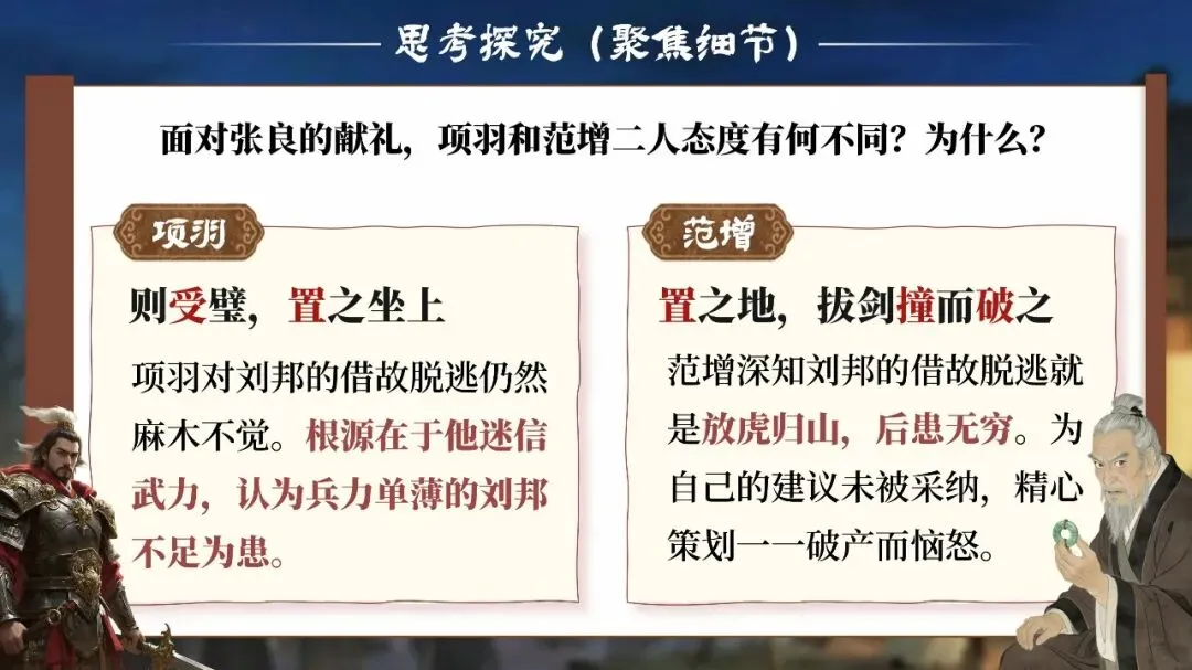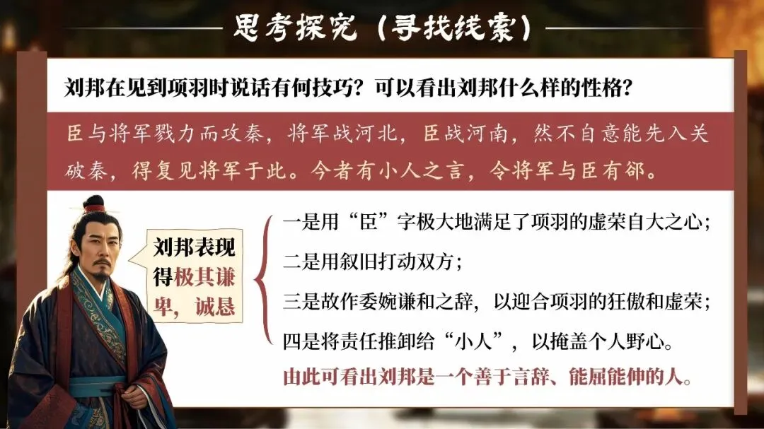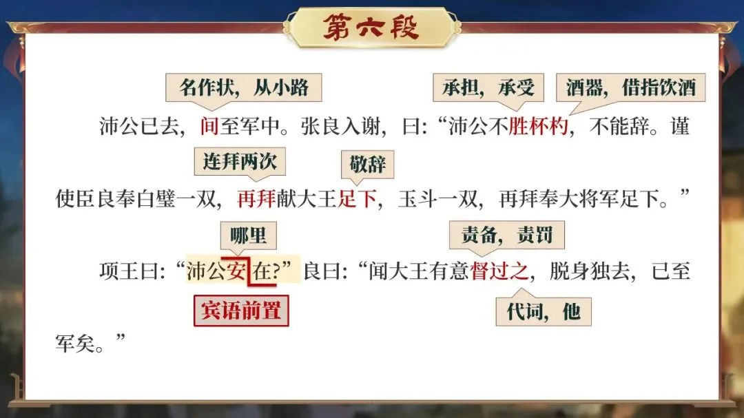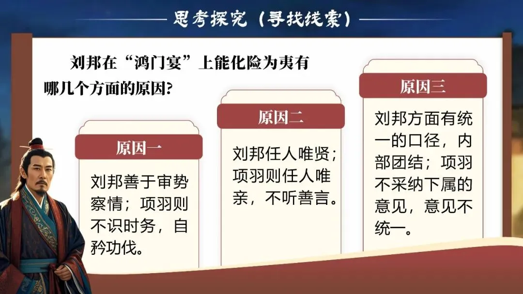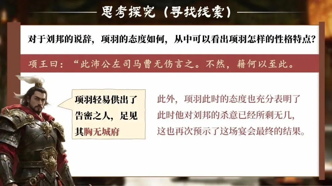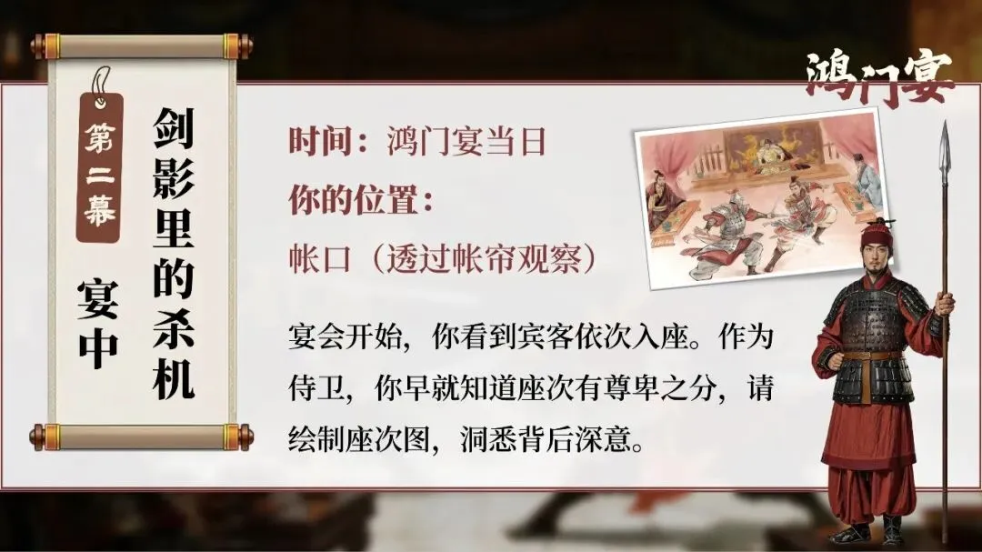 课堂从这一刻开始,学生不再只是读课文的人,而是潜入鸿门宴现场的“历史调查者”。