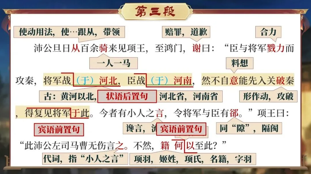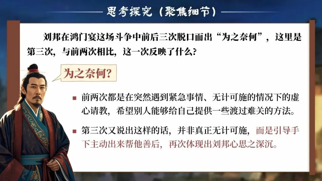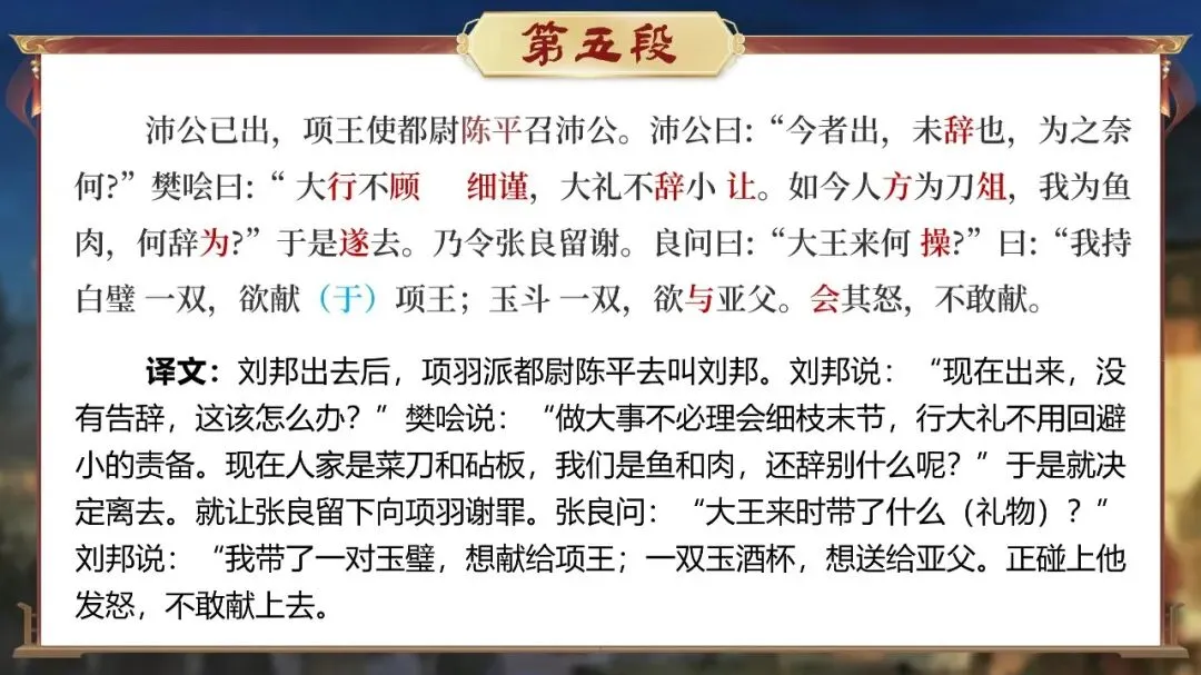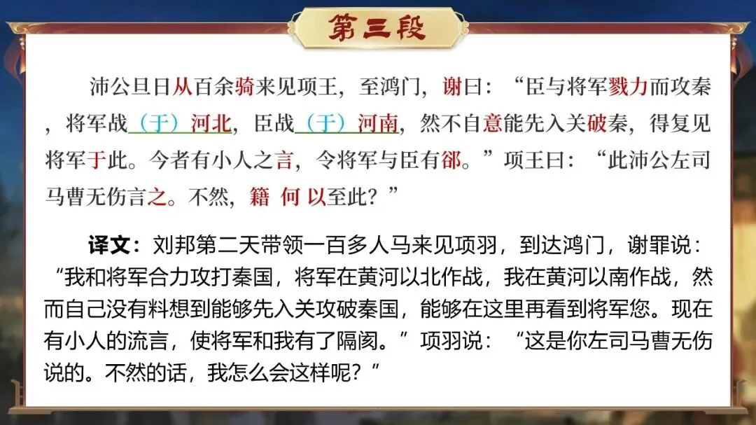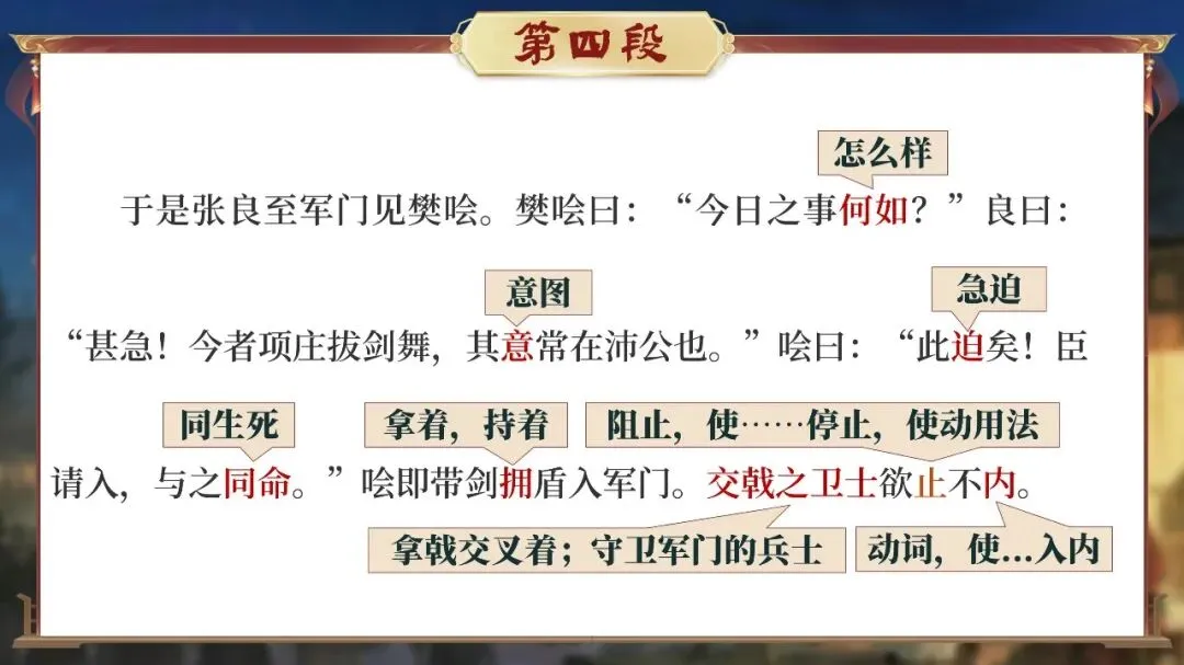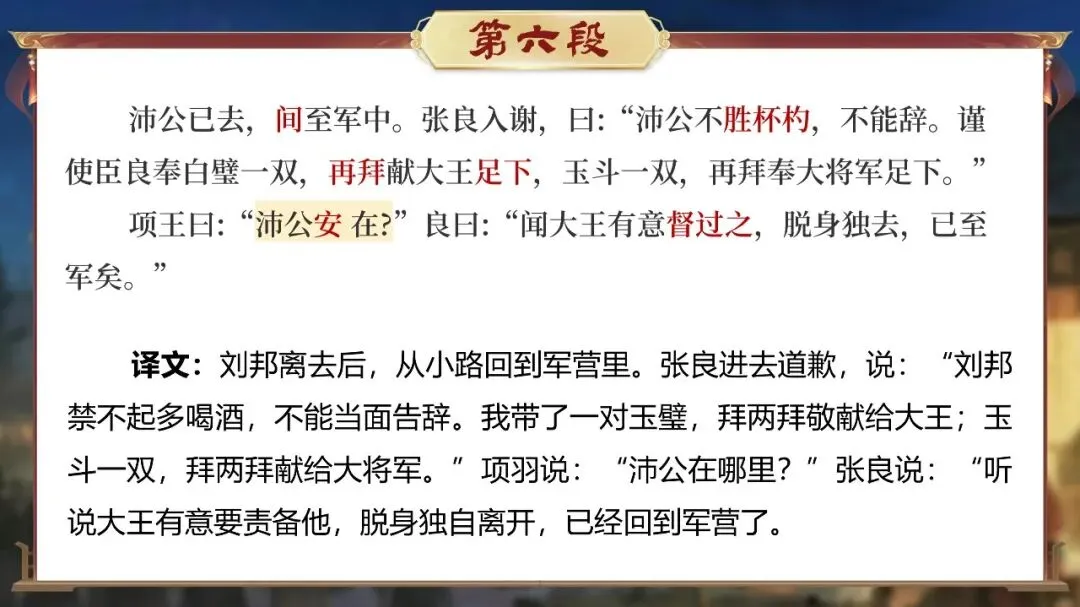 课堂从这一刻开始,学生不再只是读课文的人,而是潜入鸿门宴现场的“历史调查者”。
