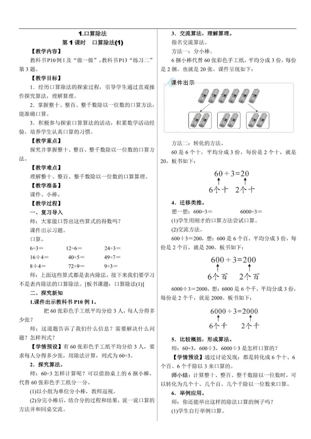 配套教案为纯文本格式,排版工整、条理清晰,包含教学目标、教学重难点、教学过程、板书设计、课后反思完整模块,重难点部分详细拆解算理和教法,新手老师也能快速上手;支持自由编辑修改,可结合本班学生学情调整教学环节,适配不同课堂节奏。