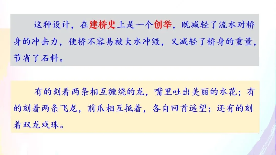 △《赵州桥》课件(节选)七彩语文云课堂倾力打造“特级教师公开课”系列产品,精选低、中、高年段共85节精品课例,全部由特级教师执教,大部分课程视频还赠送配套课件。备课、教研、提升,有这一套就够了!△点击上图可查看 低年段 课程目录