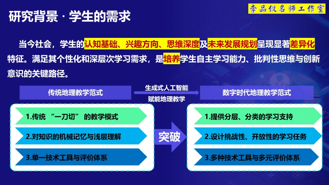 李品仪名师工作室在教育部虚拟教研室交流分享时使用的课件《素养融通导向下AI赋能地理