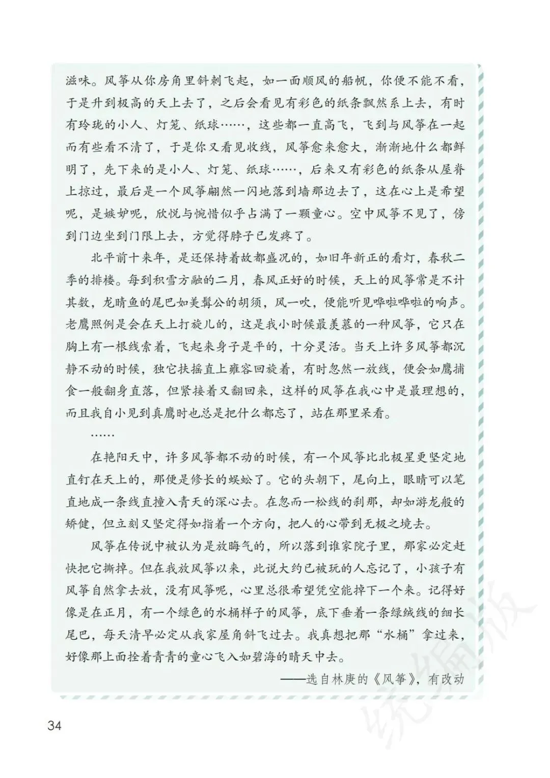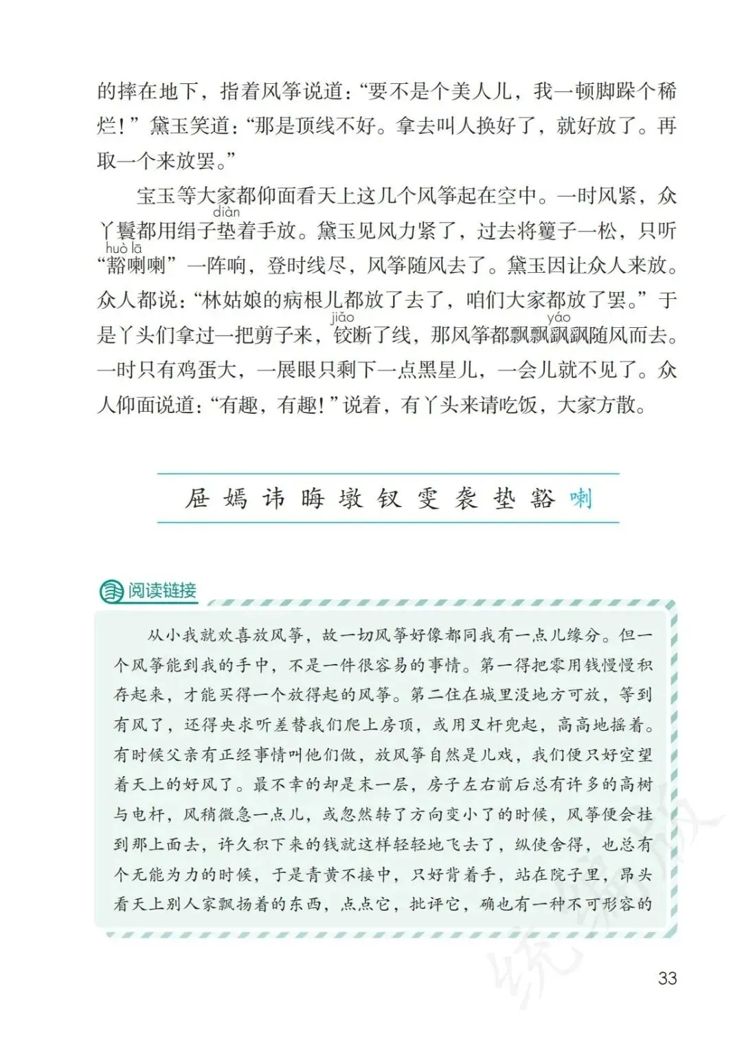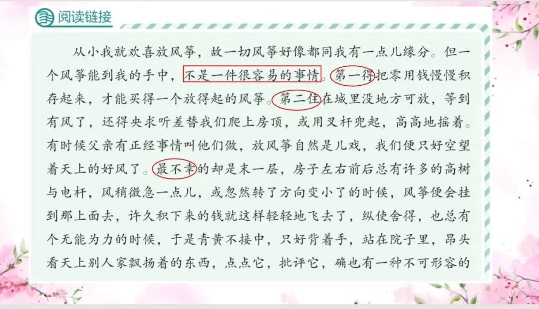 链接课后阅读,了解文中作者小时候放风筝的经历。