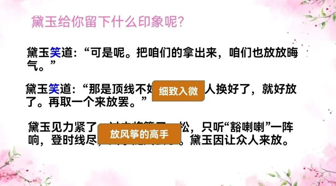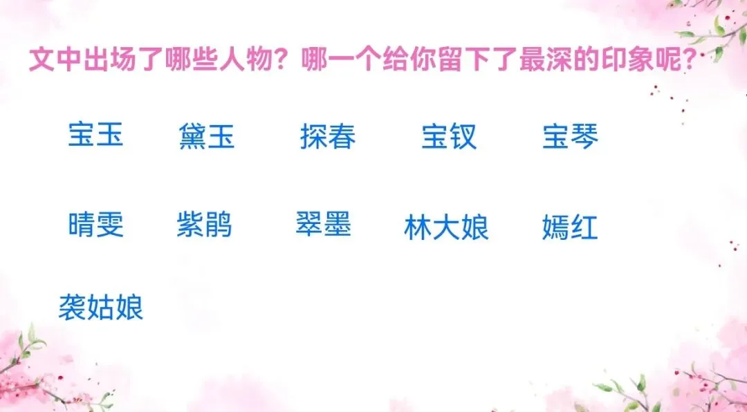 2.结合文中对黛玉的描写,说说黛玉给你留下什么印象呢?