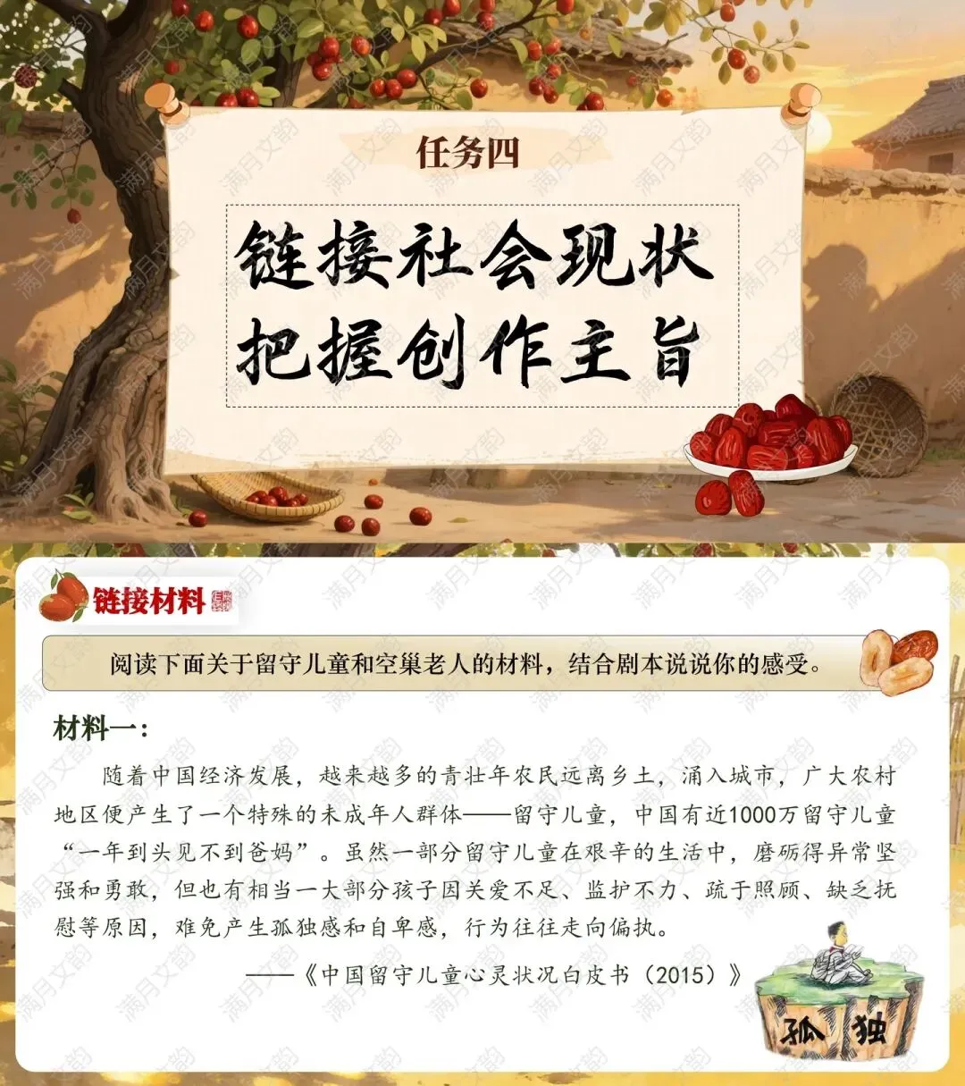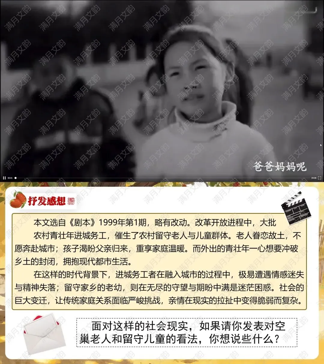环节一:结合“留守儿童”“空巢老人”数据,探讨剧本内涵