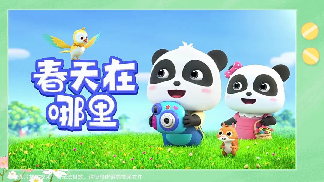 播放歌曲视频,引导幼儿完整欣赏歌曲,初步感受春天,感知歌曲欢快的情绪。