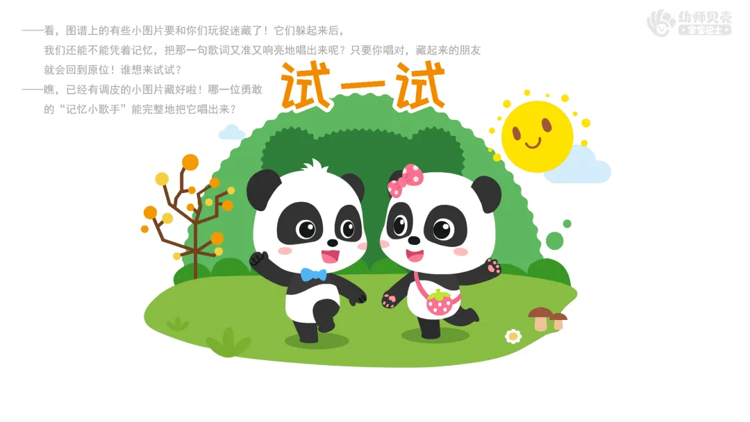 ——瞧,已经有调皮的小图片藏好啦!哪一位勇敢的“记忆小歌手”能完整地把它唱出来?