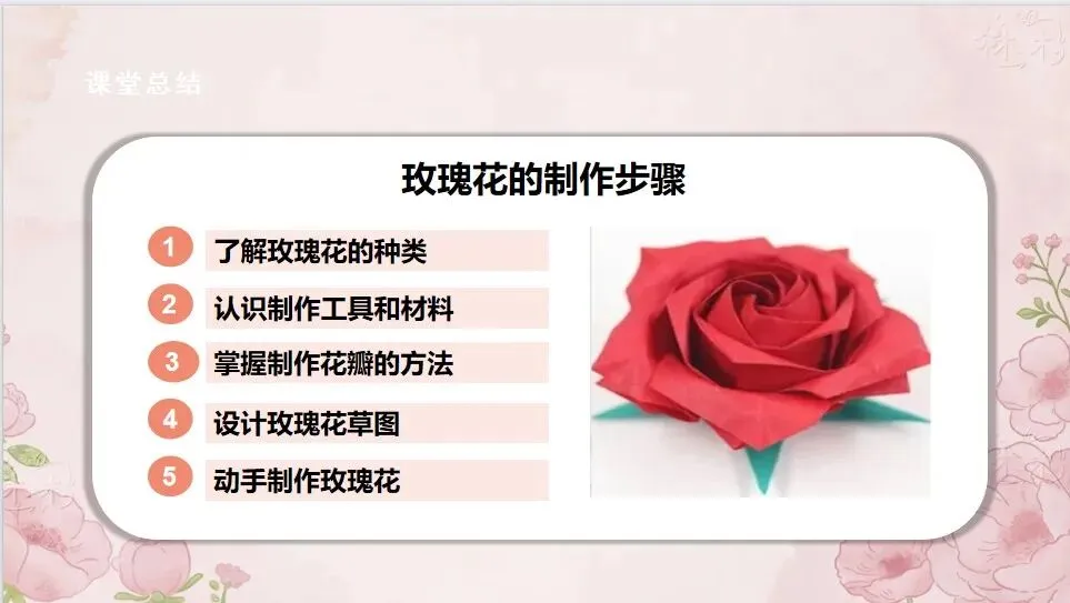 4️⃣劳动精神:在完成制作折纸玫瑰花的过程中,培养团结合作的意识,分享经验与技巧,培养团队协作精神。