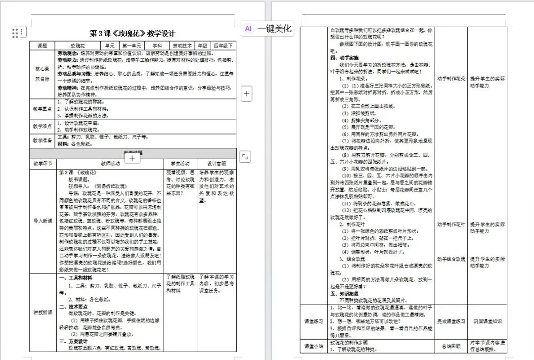 2️⃣劳动能力:通过制作折纸玫瑰花,培养手工操作能力,提高对材料的处理技巧,包括剪、折、粘等动作的协调性。