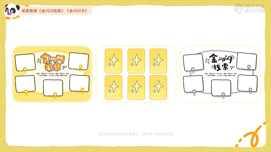 l纸面教具:《橙了!好朋友贴纸》《金闪闪线索》《金闪闪卡》。