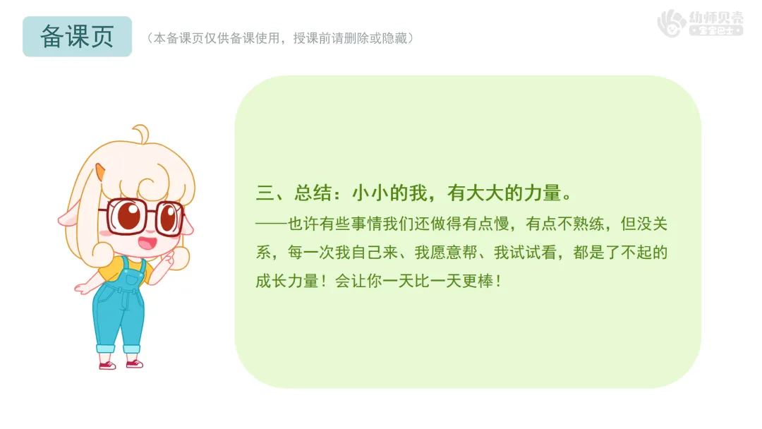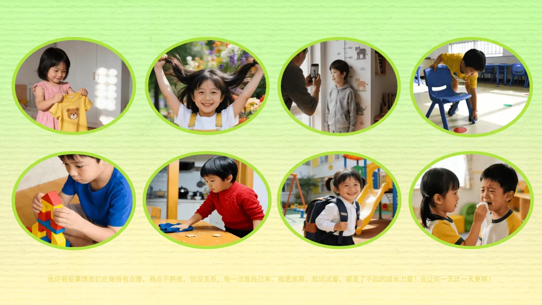 ——也许有些事情我们还做得有点慢,有点不熟练,但没关系,每一次我自己来、我愿意帮、我试试看,都是了不起的成长力量!会让你一天比一天更棒!