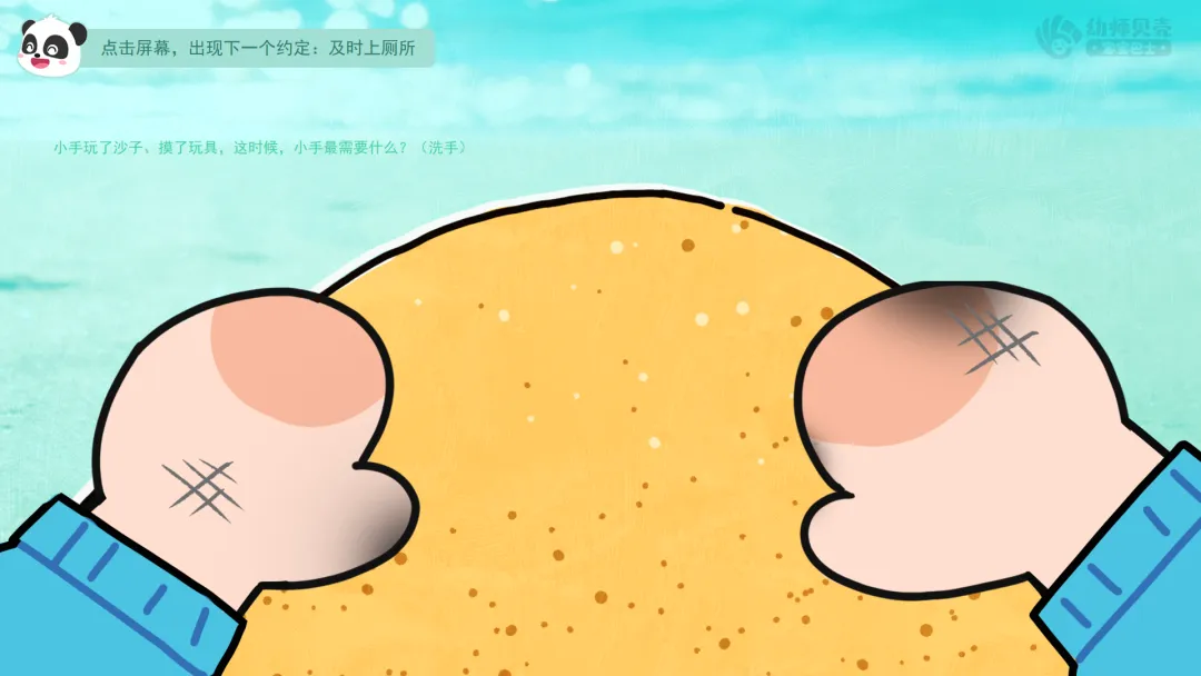 ——小手玩了沙子、摸了玩具,这时候,小手最需要什么?(洗手)