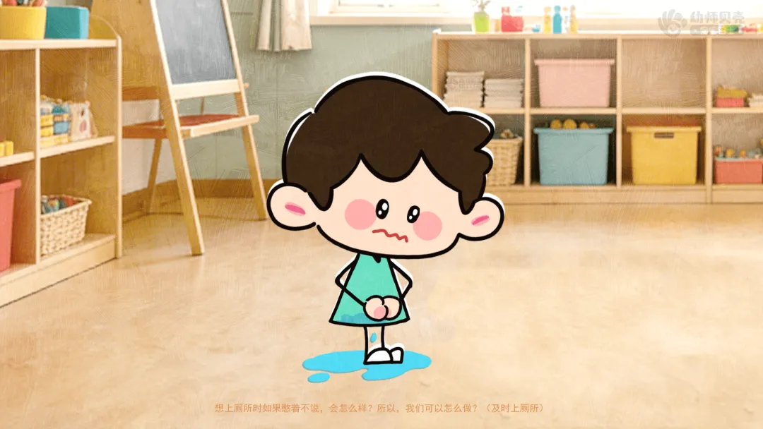 ——想上厕所时如果憋着不说,会怎么样?所以,我们可以怎么做?(告诉老师上厕所)