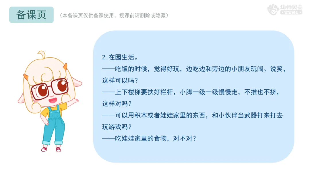 l活动要点:通过生活环节、集中活动、自主游戏三大场景,以亲切对话和情境提问的方式,引导小班幼儿共同回顾并认同班级常规,让“约定”成为幼儿愿意遵守、乐于坚持的日常习惯。